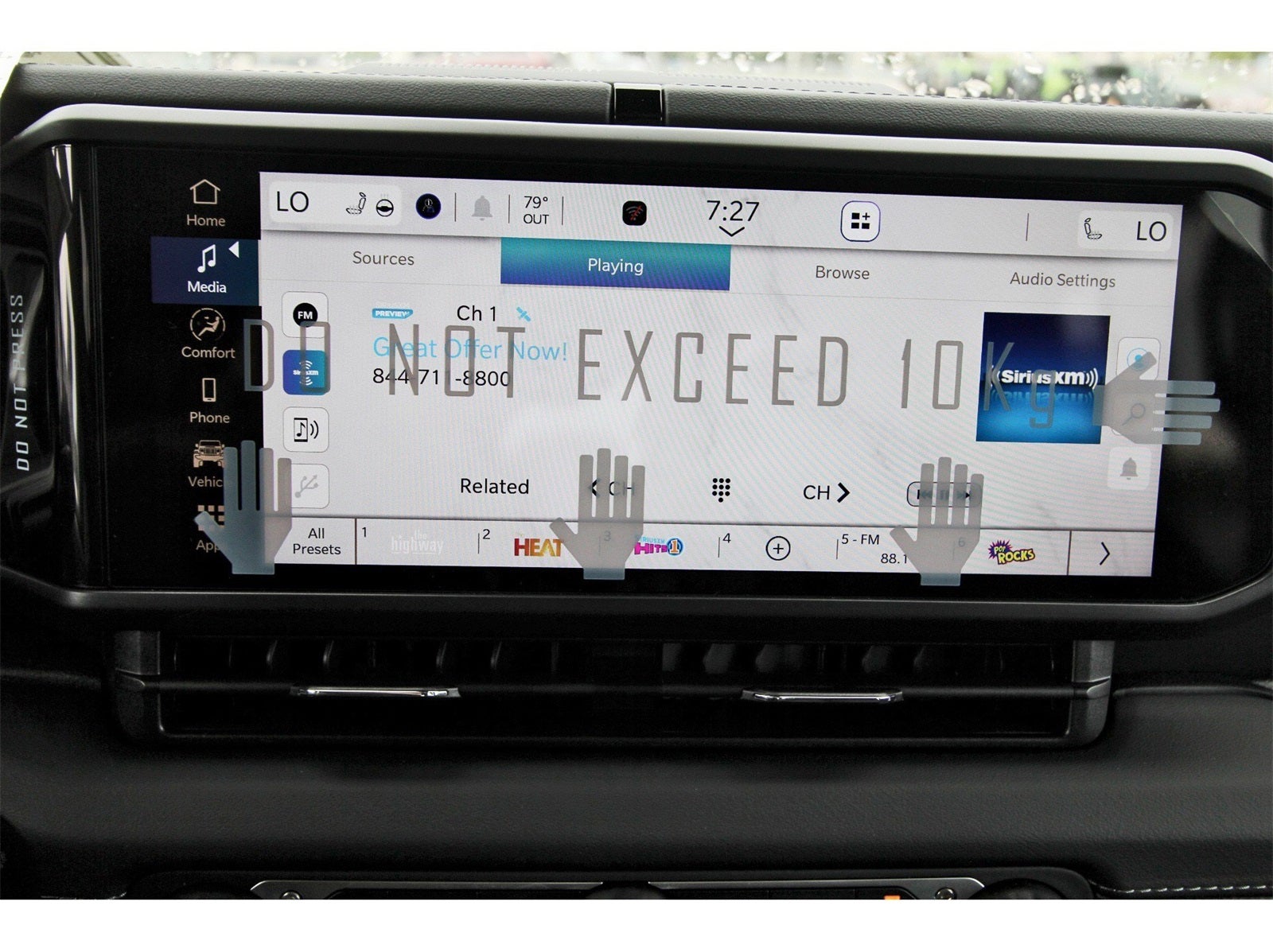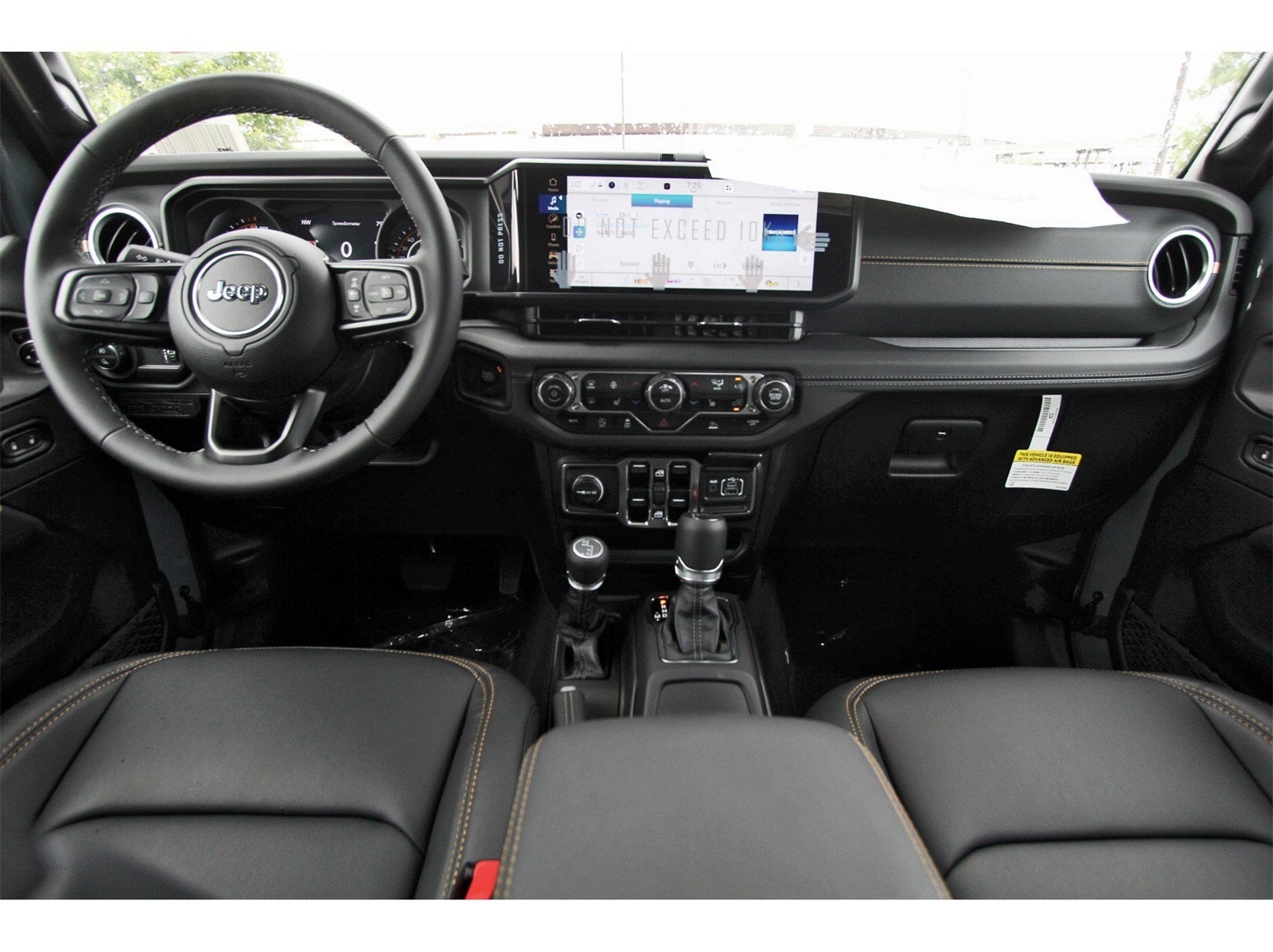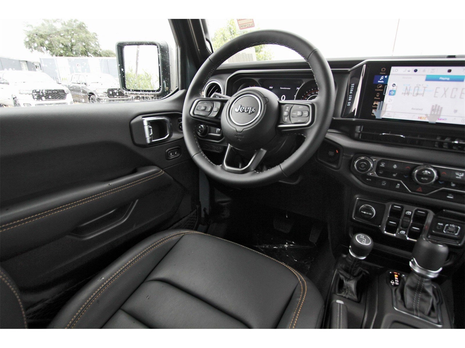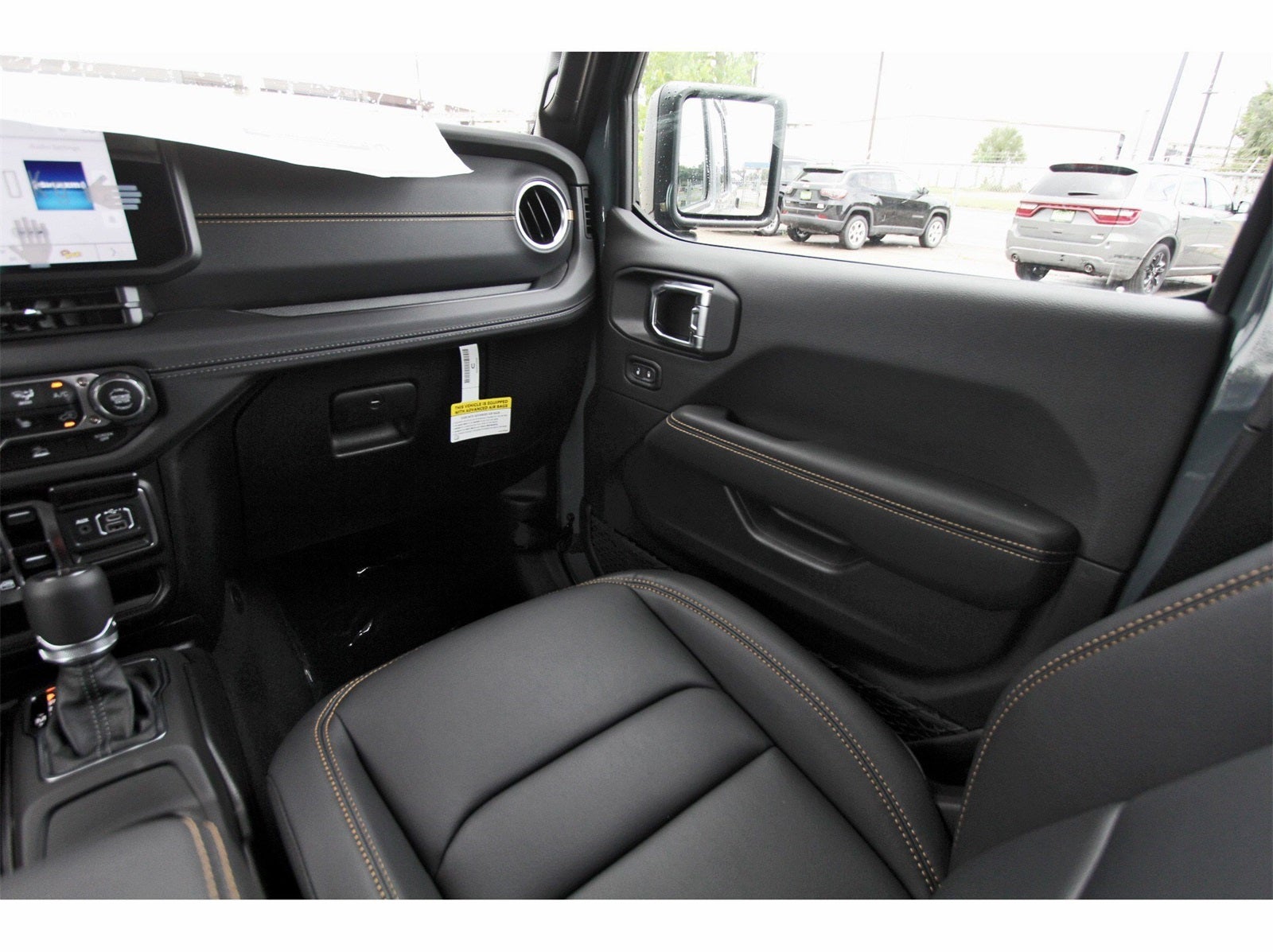 Convenience Group (Corning Gorilla Glass, Daytime Running Lamp System, Emergency/Assistance Call, Front Door Locks 2-Door Passive Entry, Heated Front Seats, Heated Steering Wheel, Remote Start System, and Universal Garage Door Opener), Quick Order Package 24Q High Tide (97 MPH Vehicle Max Speed Calibration, Advanced Brake Assist, Automatic Headlamps, Body Color 3-Piece Hard Top, Body Color Fender Flares (2-Piece), Deep Tint Sunscreen Windows, Freedom Panel Storage Bag, Full Length Floor Console Premium Armrest, Full Speed Forward Collision Warning Plus, Hard Seat Back, High Tide, High Tide Tailgate & Hood Decals, Integrated Radar Camera Module (IRCM), Leather Wrapped Park Brake Handle, Leather Wrapped Shift Knob, Power 4-Way Driver Lumbar Adjust, Power 4-Way Passenger Lumbar Adjust, Power Adjust 8-Way Driver Seat, Power Adjust 8-Way Front Passenger Seat, Power Heated Mirrors, Premium Door Trim Panel, Premium McKinley Trimmed Seats, Premium Wrapped Steering Wheel, Rear Armrest w/Cupholder Seat, Rear Sliding Window, Rear Window Defroster, Security Alarm, Sun Visors w/Illuminated Vanity Mirrors, Wheels: 17 x 7.5 Painted Black, and Willys Suspension), 110 MPH Vehicle Max Speed Calibration, 12.3 Touchscreen Display, 3.73 Rear Axle Ratio, 4-Wheel Disc Brakes, 4G LTE Wi-Fi Hot Spot, 8 Speakers, ABS brakes, Air Conditioning, Alexa Built-In, AM/FM radio: SiriusXM, Apple CarPlay, Apple CarPlay/Android Auto, Brake assist, Cloth Low-Back Bucket Seats, Compass, Connectivity - US/Canada, Delay-off headlights, Driver door bin, Driver vanity mirror, Dual front impact airbags, Dual front side impact airbags, Electronic Stability Control, Front anti-roll bar, Front Bucket Seats, Front Center Armrest w/Storage, Front fog lights, Front License Plate Bracket, Front reading lights, Google Android Auto, Illuminated entry, Integrated roll-over protection, Low tire pressure warning, MOPAR All-Weather Slush Mats, Normal Duty Suspension, Occupant sensing airbag, Outside temperature display, Overhead airbag, Panic alarm, ParkView Rear Back-Up Camera, Passenger door bin, Passenger vanity mirror, Power steering, Power windows, Radio data system, Radio: Uconnect 5 w/12.3 Display, Rear anti-roll bar, Rear reading lights, Remote keyless entry, Side Steps, Speed control, Split folding rear seat, Steering wheel mounted audio controls, Tachometer, Telescoping steering wheel, Tilt steering wheel, Traction control, Trip computer, USB Host Flip, Variably intermittent wipers, Voltmeter, and Wheels: 17 x 7.5 Black Steel Styled.