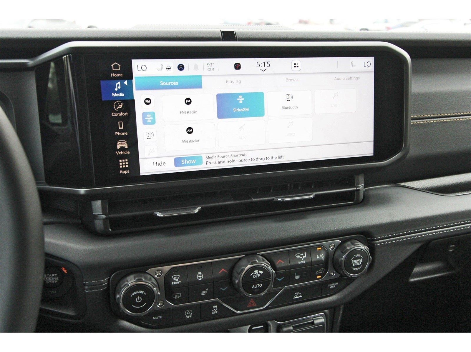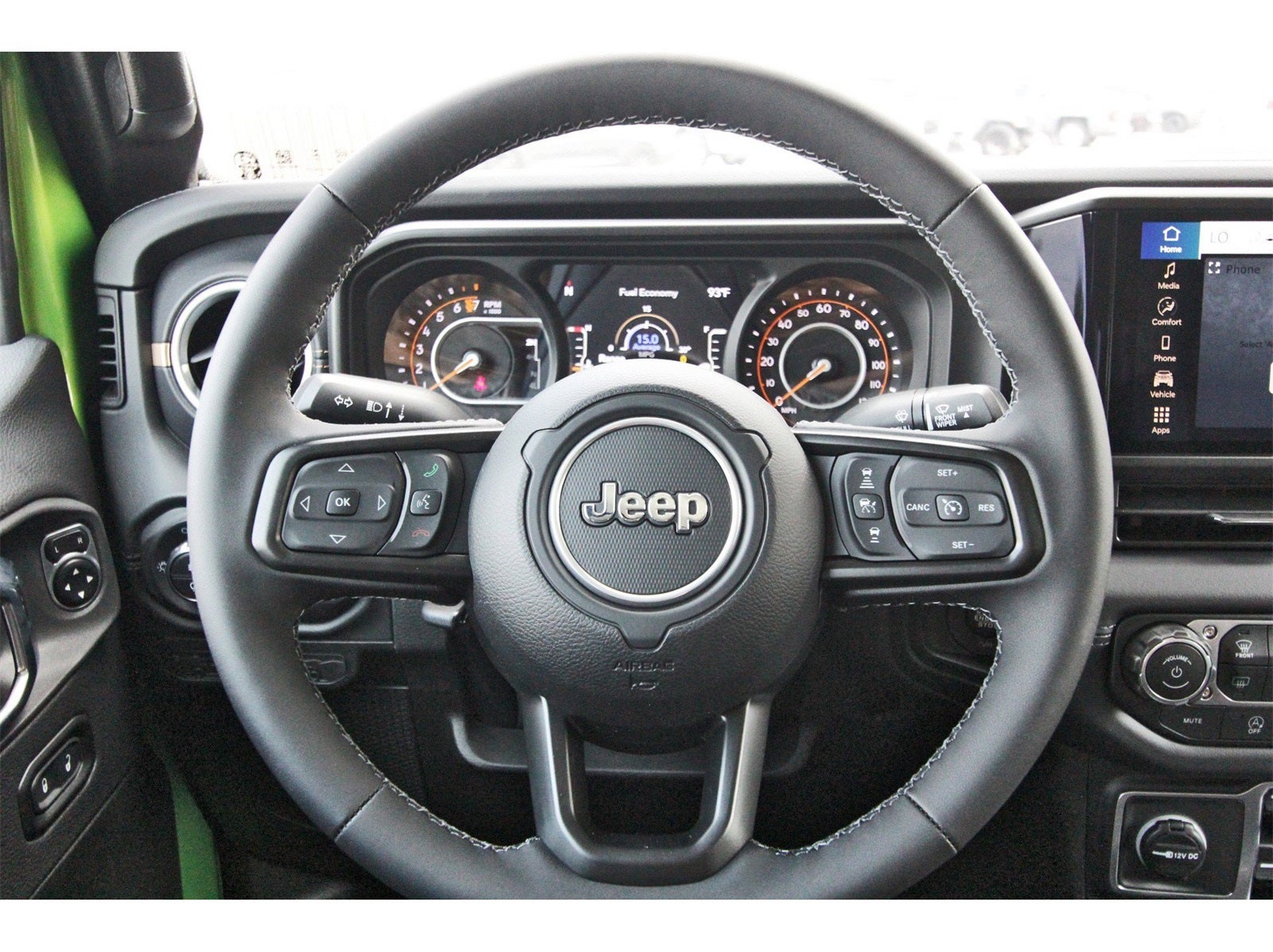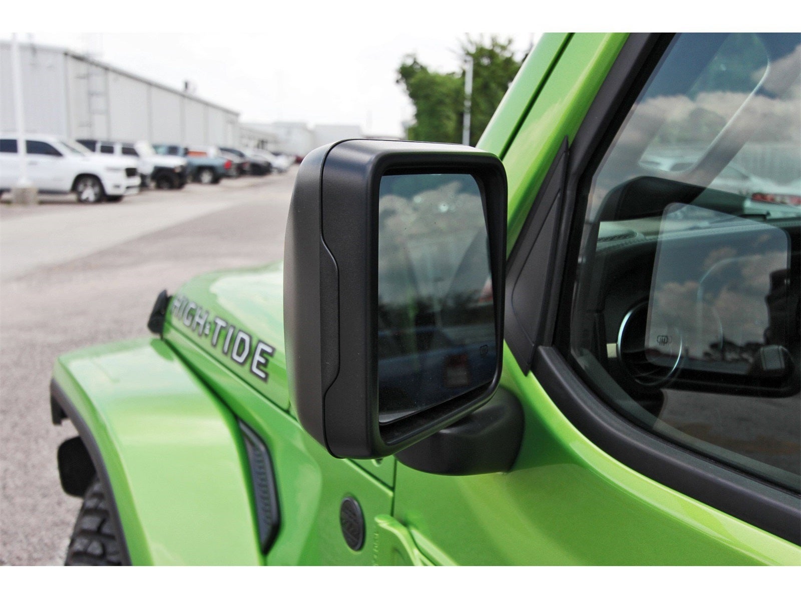 Quick Order Package 24Q High Tide (97 MPH Vehicle Max Speed Calibration, Advanced Brake Assist, Automatic Headlamps, Body Color 3-Piece Hard Top, Body Color Fender Flares (2-Piece), Daytime Running Lamp System, Deep Tint Sunscreen Windows, Freedom Panel Storage Bag, Full Length Floor Console Premium Armrest, Full Speed Forward Collision Warning Plus, Hard Seat Back, High Tide, High Tide Tailgate & Hood Decals, Integrated Radar Camera Module (IRCM), Leather Wrapped Park Brake Handle, Leather Wrapped Shift Knob, Power 4-Way Driver Lumbar Adjust, Power 4-Way Passenger Lumbar Adjust, Power Adjust 8-Way Driver Seat, Power Adjust 8-Way Front Passenger Seat, Power Heated Mirrors, Premium Door Trim Panel, Premium McKinley Trimmed Seats, Premium Wrapped Steering Wheel, Rear Armrest w/Cupholder Seat, Rear Sliding Window, Rear Window Defroster, Security Alarm, Sun Visors w/Illuminated Vanity Mirrors, Wheels: 17 x 7.5 Painted Black, and Willys Suspension), 8 Speakers, ABS brakes, AM/FM radio: SiriusXM, Compass, Electronic Stability Control, Illuminated entry, Low tire pressure warning, ParkView Rear Back-Up Camera, Remote keyless entry, Traction control, 110 MPH Vehicle Max Speed Calibration, 12.3 Touchscreen Display, 3.73 Rear Axle Ratio, 4-Wheel Disc Brakes, 4G LTE Wi-Fi Hot Spot, Air Conditioning, Alexa Built-In, Apple CarPlay, Apple CarPlay/Android Auto, Brake assist, Cloth Low-Back Bucket Seats, Connectivity - US/Canada, Delay-off headlights, Driver door bin, Driver vanity mirror, Dual front impact airbags, Dual front side impact airbags, Front anti-roll bar, Front Bucket Seats, Front Center Armrest w/Storage, Front fog lights, Front reading lights, Google Android Auto, Integrated roll-over protection, Normal Duty Suspension, Occupant sensing airbag, Outside temperature display, Overhead airbag, Panic alarm, Passenger door bin, Passenger vanity mirror, Power steering, Power windows, Radio data system, Radio: Uconnect 5 w/12.3 Display, Rear anti-roll bar, Rear reading lights, Speed control, Split folding rear seat, Steering wheel mounted audio controls, Tachometer, Telescoping steering wheel, Tilt steering wheel, Trip computer, USB Host Flip, Variably intermittent wipers, Voltmeter, and Wheels: 17 x 7.5 Black Steel Styled.