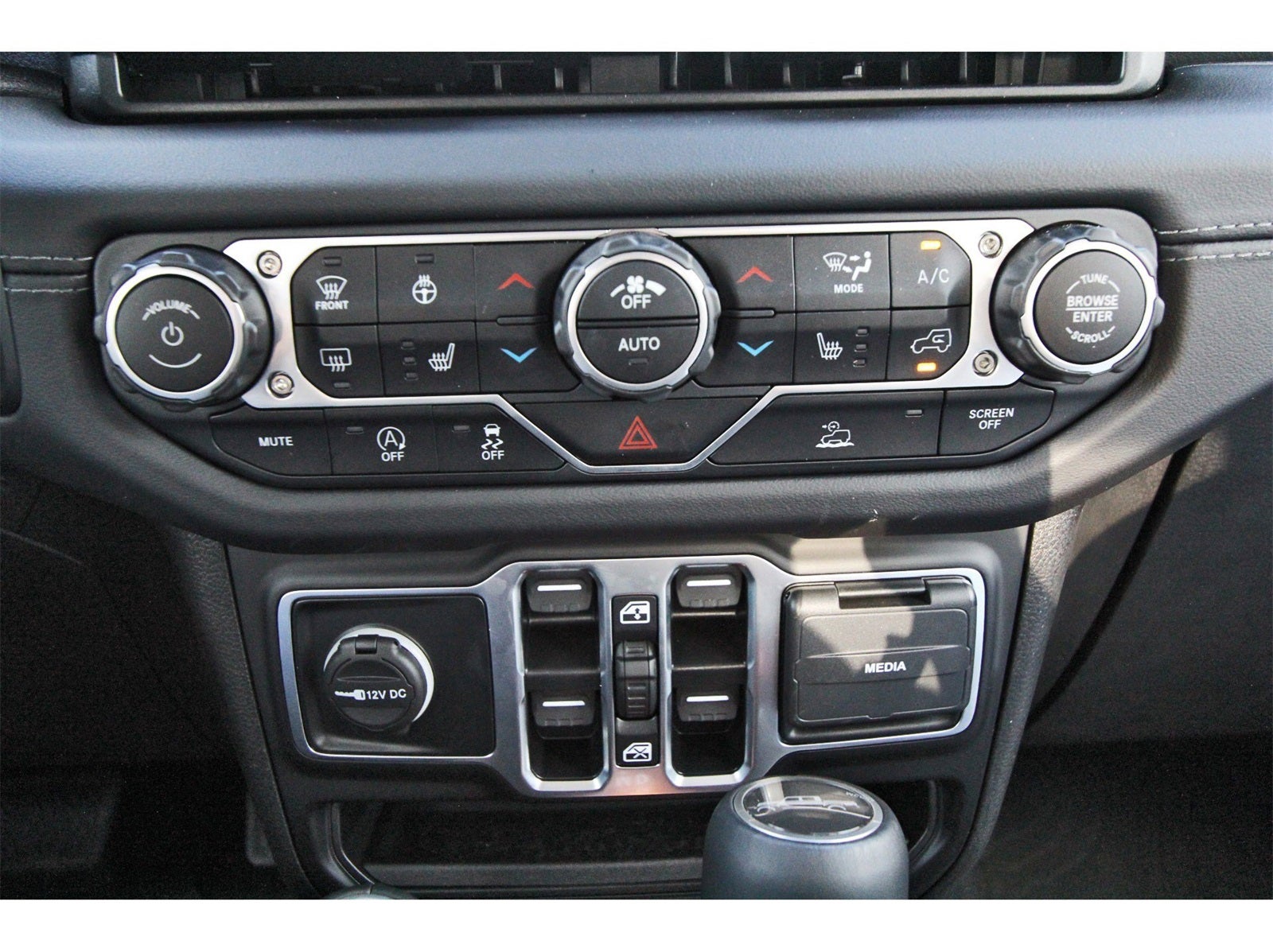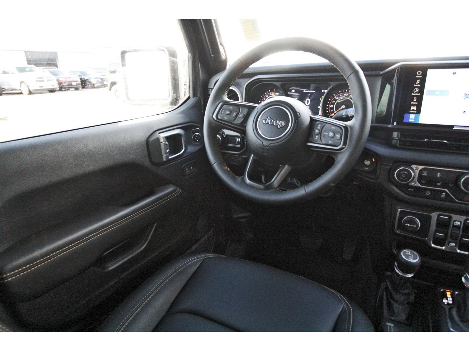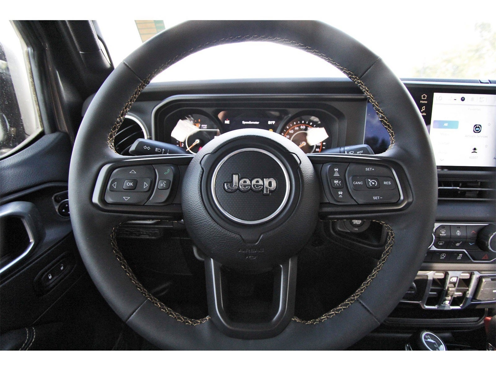 Convenience Group (Corning Gorilla Glass, Daytime Running Lamp System, Emergency/Assistance Call, Front Door Locks 2-Door Passive Entry, Heated Front Seats, Heated Steering Wheel, Remote Start System, and Universal Garage Door Opener), LED Headlamp & Fog Lamp Group (Daytime Running Lamps LED Accents, Front LED Fog Lamps, and LED Premium Reflector Headlamps), Quick Order Package 24J Texas Trail (97 MPH Vehicle Max Speed Calibration, Advanced Brake Assist, Automatic Headlamps, Body Color 3-Piece Hard Top, Body Color Fender Flares (2-Piece), Deep Tint Sunscreen Windows, Freedom Panel Storage Bag, Full Length Floor Console Premium Armrest, Full Speed Forward Collision Warning Plus, Hard Seat Back, Integrated Radar Camera Module (IRCM), Leather Wrapped Park Brake Handle, Leather Wrapped Shift Knob, Power 4-Way Driver Lumbar Adjust, Power 4-Way Passenger Lumbar Adjust, Power Adjust 8-Way Driver Seat, Power Adjust 8-Way Front Passenger Seat, Power Heated Mirrors, Premium Door Trim Panel, Premium McKinley Trimmed Seats, Premium Wrapped Steering Wheel, Rear Armrest w/Cupholder Seat, Rear Sliding Window, Rear Window Defroster, Security Alarm, Sun Visors w/Illuminated Vanity Mirrors, Texas Trail, Texas Trail Tailgate & Hood Decals, Wheels: 17 x 7.5 Painted Black, and Willys Suspension), 110 MPH Vehicle Max Speed Calibration, 12.3 Touchscreen Display, 3.73 Rear Axle Ratio, 4-Wheel Disc Brakes, 4G LTE Wi-Fi Hot Spot, 8 Speakers, ABS brakes, Air Conditioning, Alexa Built-In, AM/FM radio: SiriusXM, Apple CarPlay, Apple CarPlay/Android Auto, Brake assist, Cloth Low-Back Bucket Seats, Compass, Connectivity - US/Canada, Delay-off headlights, Driver door bin, Driver vanity mirror, Dual front impact airbags, Dual front side impact airbags, Electronic Stability Control, Front anti-roll bar, Front Bucket Seats, Front Center Armrest w/Storage, Front fog lights, Front License Plate Bracket, Front reading lights, Google Android Auto, Illuminated entry, Integrated roll-over protection, Low tire pressure warning, MOPAR All-Weather Slush Mats, Normal Duty Suspension, Occupant sensing airbag, Outside temperature display, Overhead airbag, Panic alarm, ParkView Rear Back-Up Camera, Passenger door bin, Passenger vanity mirror, Power steering, Power windows, Radio data system, Radio: Uconnect 5 w/12.3 Display, Rear anti-roll bar, Rear reading lights, Remote keyless entry, Speed control, Split folding rear seat, Steering wheel mounted audio controls, Tachometer, Telescoping steering wheel, Tilt steering wheel, Traction control, Trip computer, USB Host Flip, Variably intermittent wipers, Voltmeter, and Wheels: 17 x 7.5 Black Steel Styled.