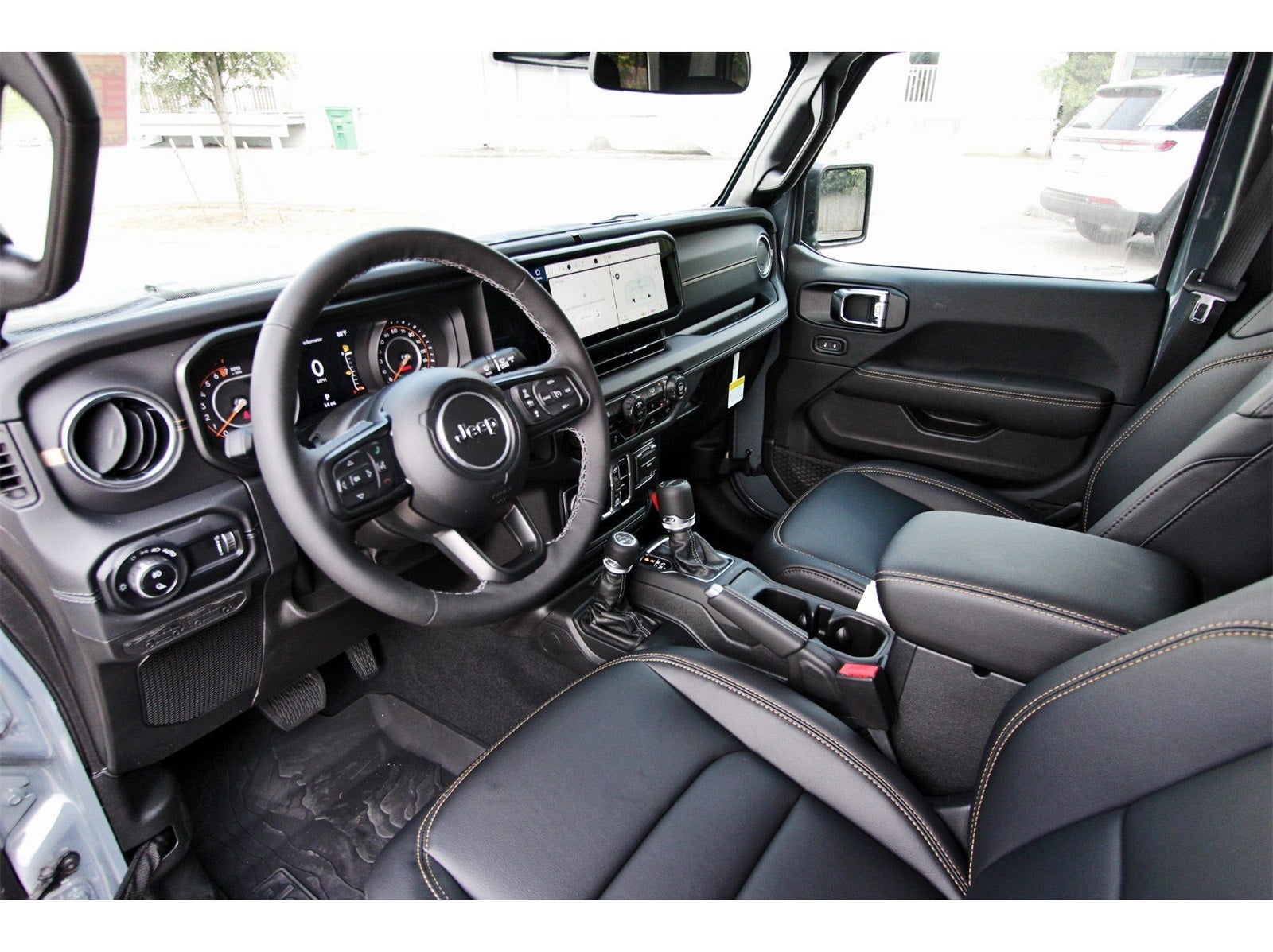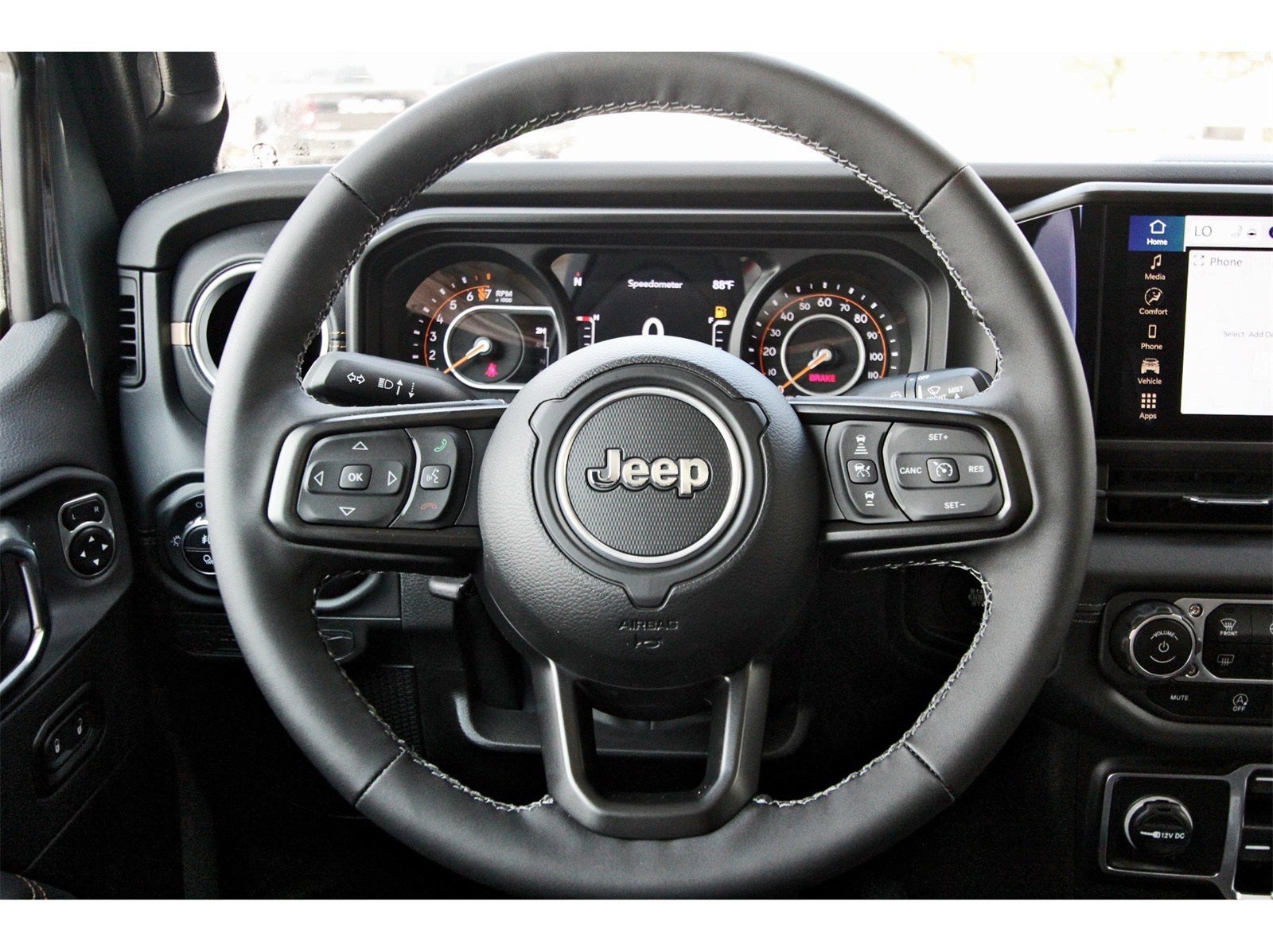 Convenience Group (Corning Gorilla Glass, Daytime Running Lamp System, Emergency/Assistance Call, Front Door Locks 2-Door Passive Entry, Heated Front Seats, Heated Steering Wheel, Remote Start System, and Universal Garage Door Opener), Quick Order Package 24J Texas Trail (97 MPH Vehicle Max Speed Calibration, Advanced Brake Assist, Automatic Headlamps, Body Color 3-Piece Hard Top, Body Color Fender Flares (2-Piece), Deep Tint Sunscreen Windows, Freedom Panel Storage Bag, Full Length Floor Console Premium Armrest, Full Speed Forward Collision Warning Plus, Hard Seat Back, Integrated Radar Camera Module (IRCM), Leather Wrapped Park Brake Handle, Leather Wrapped Shift Knob, Power 4-Way Driver Lumbar Adjust, Power 4-Way Passenger Lumbar Adjust, Power Adjust 8-Way Driver Seat, Power Adjust 8-Way Front Passenger Seat, Power Heated Mirrors, Premium Door Trim Panel, Premium McKinley Trimmed Seats, Premium Wrapped Steering Wheel, Rear Armrest w/Cupholder Seat, Rear Sliding Window, Rear Window Defroster, Security Alarm, Sun Visors w/Illuminated Vanity Mirrors, Texas Trail, Texas Trail Tailgate & Hood Decals, Wheels: 17 x 7.5 Painted Black, and Willys Suspension), 110 MPH Vehicle Max Speed Calibration, 12.3 Touchscreen Display, 3.73 Rear Axle Ratio, 4-Wheel Disc Brakes, 4G LTE Wi-Fi Hot Spot, 8 Speakers, ABS brakes, Air Conditioning, Alexa Built-In, AM/FM radio: SiriusXM, Apple CarPlay, Apple CarPlay/Android Auto, Brake assist, Cloth Low-Back Bucket Seats, Compass, Connectivity - US/Canada, Delay-off headlights, Driver door bin, Driver vanity mirror, Dual front impact airbags, Dual front side impact airbags, Electronic Stability Control, Front anti-roll bar, Front Bucket Seats, Front Center Armrest w/Storage, Front fog lights, Front License Plate Bracket, Front reading lights, Google Android Auto, Illuminated entry, Integrated roll-over protection, Low tire pressure warning, MOPAR All-Weather Slush Mats, Normal Duty Suspension, Occupant sensing airbag, Outside temperature display, Overhead airbag, Panic alarm, ParkView Rear Back-Up Camera, Passenger door bin, Passenger vanity mirror, Power steering, Power windows, Radio data system, Radio: Uconnect 5 w/12.3 Display, Rear anti-roll bar, Rear reading lights, Remote keyless entry, Side Steps, Speed control, Split folding rear seat, Steering wheel mounted audio controls, Tachometer, Telescoping steering wheel, Tilt steering wheel, Traction control, Trip computer, USB Host Flip, Variably intermittent wipers, Voltmeter, and Wheels: 17 x 7.5 Black Steel Styled.