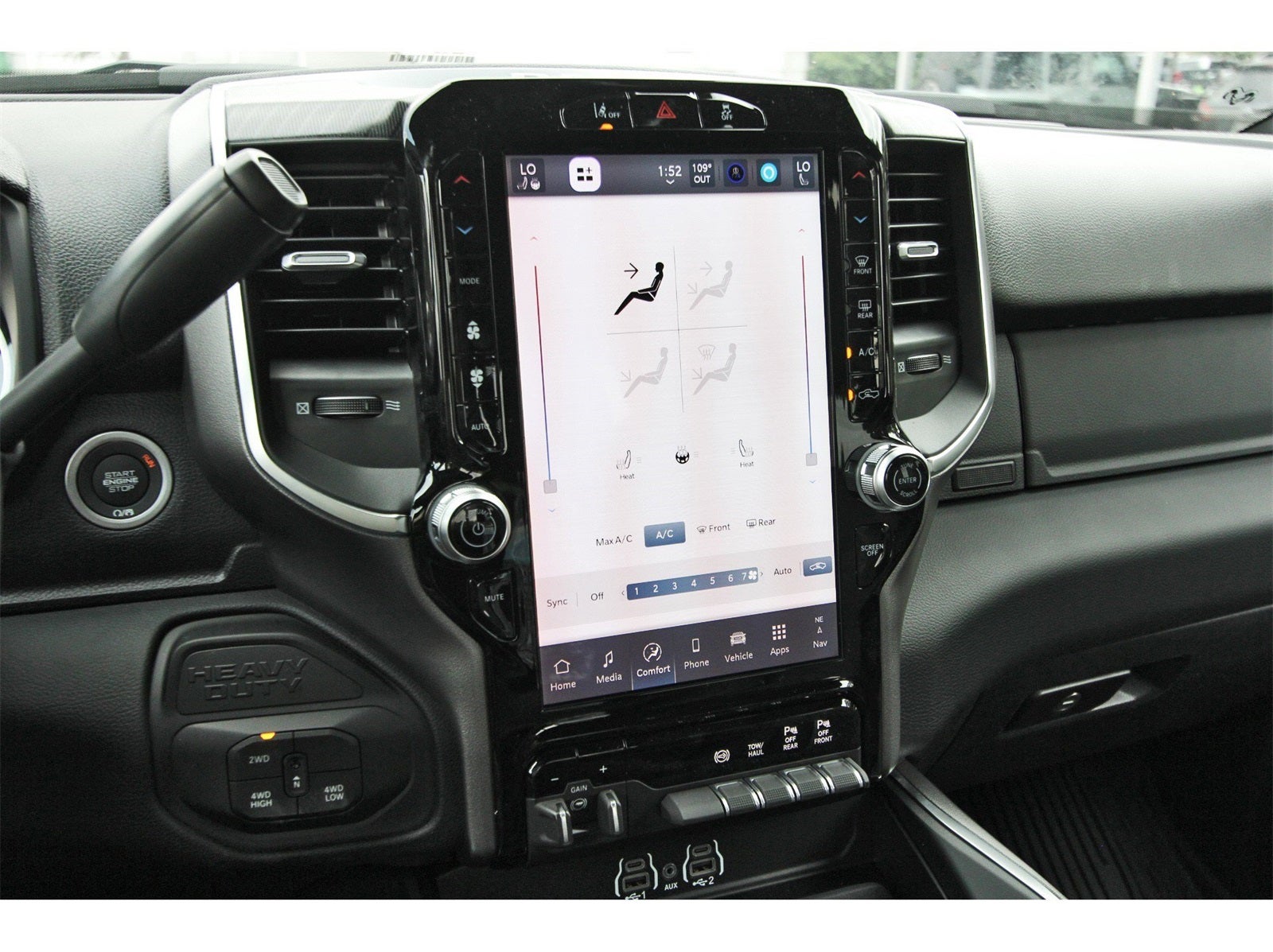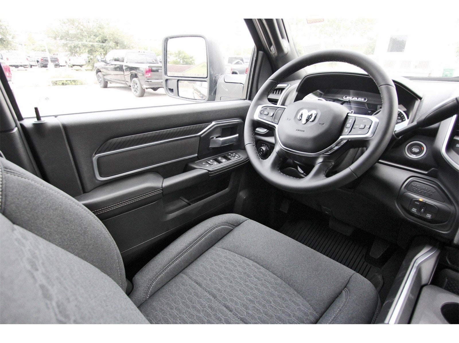 Big Horn Level 2 Plus Equipment Group (115V Auxiliary Front Power Outlet, 115V Auxiliary Rear Power Outlet, 12 Touchscreen Display, 2 Way Rear Headrest Seat, 2nd Row In Floor Storage Bins, 4 Way Front Headrests, 400W Inverter, 4G LTE Wi-Fi Hot Spot, 9 Alpine Speakers w/Subwoofer, Active Lane Management System, Adaptive Steering System, Air Conditioning ATC w/Dual Zone Control, Alexa Built-In, Anti-Spin Differential Rear Axle, Apple CarPlay, Auto High Beam Headlamp Control, Auto Power-Folding Mirrors, Auto-Dimming Rear-View Mirror, Black Exterior Mirrors, Blind Spot & Cross Path Detection, Bucket Seats, Connected Travel & Traffic Services, Connectivity - US/Canada, CTR Stop Lamp w/Cargo View Camera, Dampened Tailgate, Disassociated Touchscreen Display, Drowsy Driver Detection, Dual Glove Boxes, Dual Wireless Charging Pad, Emergency Vehicle Alert System (EVAS), Exterior 115V AC Outlet, Exterior Mirrors Courtesy Lamps, Exterior Mirrors w/Heating Element, Exterior Mirrors w/Supplemental Signals, Foam Bottle Insert (Door Trim Panel), Folding Flat Load Floor Storage, Footwell Courtesy Lamp, Forward & Reverse Utility Lights, Front Seat Back Map Pockets, Full Length Upgraded Floor Console, Global Telematics Box Module (TBM), Glove Box Lamp, Google Android Auto, GPS Antenna Input, GPS Navigation, HD Radio, Heated Front Seats, Heated Steering Wheel, Integrated Voice Command w/Bluetooth®, LED Bed Lighting, LED Tail Lamps, Locking Lower Glove Box, Luxury Steering Wheel, Manual Adjust 4-Way Front Passenger Seat, Media Hub w/2 Charge Only USBs, Mirror Running Lights, MOPAR Deployable Bed Step, MOPAR Spray In Bedliner, Off-Road Info Pages, Power 2-Way Driver Lumbar Adjust, Power Adjust 8-Way Driver Seat, Power Adjust Mirrors, Power Adjustable Convex Aux Mirrors, Power Adjustable Pedals, Power Heated Folding Telescopic Mirrors, Power Telescoping Mirrors, Premium Cloth Bucket Seats, Radio: Uconnect 5 Nav w/12.0 Display, Rain Sensitive Windshield Wipers, Rear 60/40 Folding Seat, Rear Dome w/On/Off Switch Lamp, Rear Power Sliding Window, Red Tail Lamp Bezels, Remote Start System, Selectable Tire Fill Alert, SiriusXM Radio Service, SiriusXM w/360L, Steering Wheel Mounted Audio Controls, Sun Visors w/Illuminated Vanity Mirrors, Surround View Camera System, Traffic Sign Recognition, Trailer Reverse Guidance, Trailer Tire Pressure Monitoring System, Trailer Tow Pages, and Universal Garage Door Opener), Quick Order Package 24Y Lone Star (Regional) (Lone Star Badge), Sport Appearance Package (Black Interior Accents, Body Color Grille Surround, Painted Front Bumper, Painted Rear Bumper, and Sport Decal), Tow-Mode Digital Rearview Mirror Package (Digital Rearview Mirror and Tow-Mode Camera (Wired)), 4-Wheel Disc Brakes, 40/20/40 Split Bench Seat, 5th Wheel/Gooseneck Towing Prep Group, 6 Speakers, ABS brakes, Air Conditioning, Alloy wheels, AM/FM radio: SiriusXM, Apple CarPlay/Android Auto, Brake assist, Bumpers: chrome, Clearance Lamps, Cloth 40/20/40 Bench Seat, Compass, Delay-off headlights, Delete Deployable Bed Step (DISC), Driver door bin, Dual front impact airbags, Dual front side impact airbags, Electronic Stability Control, Engine Block Heater, Front anti-roll bar, Front Armrest w/Cupholders, Front Center Armrest w/Storage, Front fog lights, Front License Plate Bracket, Front reading lights, Fully automatic headlights, Heated door mirrors, Illuminated entry, Low tire pressure warning, Manual Adjust 4-Way Driver Seat, MOPAR Front & Rear Rubber Floor Mats, Occupant sensing airbag, Outside temperature display, Overhead airbag, Overhead console, Panic alarm, ParkView Rear Back-Up Camera, Passenger door bin, Passenger vanity mirror, Power door mirrors, Power steering, Power windows, Radio data system, Radio: Uconnect 5 w/8.4 Display, Rear anti-roll bar, Rear Folding Seat, Price includes: $2000 - 2025 National Bonus Cash . Exp. 02/02/2026 $2000 - 2025 National Select Inventory Bonus Cash w/ 3FV . Exp. 02/02/2026