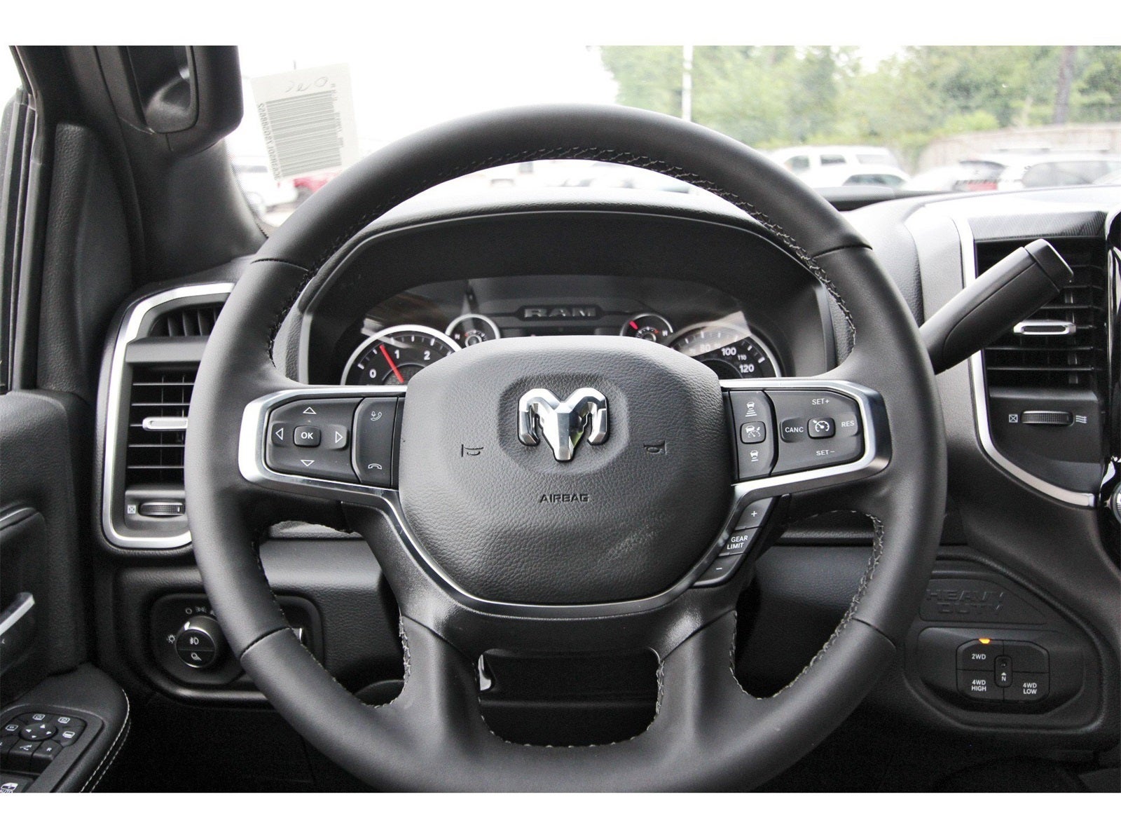 Big Horn Level 1 Plus Equipment Group (12 Touchscreen Display, 2 Way Rear Headrest Seat, 2nd Row In Floor Storage Bins, 4 Way Front Headrests, 40/20/40 Split Bench Seat, 4G LTE Wi-Fi Hot Spot, 9 Alpine Speakers w/Subwoofer, Air Conditioning ATC w/Dual Zone Control, Alexa Built-In, Anti-Spin Differential Rear Axle, Apple CarPlay, Auto Power-Folding Mirrors, Auto-Dimming Rear-View Mirror, Black Exterior Mirrors, Connected Travel & Traffic Services, Connectivity - US/Canada, Dual Glove Boxes, Emergency Vehicle Alert System (EVAS), Exterior Mirrors Courtesy Lamps, Exterior Mirrors w/Heating Element, Exterior Mirrors w/Supplemental Signals, Foam Bottle Insert (Door Trim Panel), Folding Flat Load Floor Storage, Footwell Courtesy Lamp, Forward & Reverse Utility Lights, Front Armrest w/Cupholders, Front Center Seat Cushion Storage, Front Seat Back Map Pockets, Global Telematics Box Module (TBM), Glove Box Lamp, Google Android Auto, GPS Antenna Input, GPS Navigation, HD Radio, Integrated Voice Command w/Bluetooth®, LED Bed Lighting, Locking Lower Glove Box, Luxury Steering Wheel, Manual Adjust 4-Way Front Passenger Seat, Mirror Running Lights, MOPAR Deployable Bed Step, MOPAR Spray In Bedliner, Off-Road Info Pages, Power 2-Way Driver Lumbar Adjust, Power Adjust 8-Way Driver Seat, Power Adjust Mirrors, Power Adjustable Convex Aux Mirrors, Power Heated Folding Telescopic Mirrors, Power Telescoping Mirrors, Premium Cloth 40/20/40 Bench Seat, Radio: Uconnect 5 Nav w/12.0 Display, Rear 60/40 Folding Seat, Rear Dome w/On/Off Switch Lamp, Remote Start System, Remote USB Port - Charge Only, Selectable Tire Fill Alert, SiriusXM Radio Service, SiriusXM w/360L, Steering Wheel Mounted Audio Controls, Storage Tray, and Trailer Tow Pages), Heated Seats & Wheel Group (Heated Front Seats and Heated Steering Wheel), Quick Order Package 24Y Lone Star (Regional) (Lone Star Badge), Sport Appearance Package (Black Interior Accents, Body Color Grille Surround, Painted Front Bumper, Painted Rear Bumper, and Sport Decal), 4-Wheel Disc Brakes, 5th Wheel/Gooseneck Towing Prep Group, 6 Speakers, ABS brakes, Air Conditioning, Alloy wheels, AM/FM radio: SiriusXM, Apple CarPlay/Android Auto, Brake assist, Bumpers: chrome, Clearance Lamps, Cloth 40/20/40 Bench Seat, Compass, Delay-off headlights, Delete Deployable Bed Step (DISC), Driver door bin, Dual front impact airbags, Dual front side impact airbags, Electronic Stability Control, Engine Block Heater, Front anti-roll bar, Front Center Armrest w/Storage, Front fog lights, Front License Plate Bracket, Front reading lights, Fully automatic headlights, Heated door mirrors, Illuminated entry, Low tire pressure warning, Manual Adjust 4-Way Driver Seat, MOPAR Front & Rear Rubber Floor Mats, Occupant sensing airbag, Outside temperature display, Overhead airbag, Overhead console, Panic alarm, ParkView Rear Back-Up Camera, Passenger door bin, Passenger vanity mirror, Power door mirrors, Power steering, Power windows, Radio data system, Radio: Uconnect 5 w/8.4 Display, Rear anti-roll bar, Rear Folding Seat, Rear seat center armrest, Rear step bumper, Rear window defroster, Remote keyless entry, Security system, Speed control, Tachometer, Tilt steering wheel, Traction control, Trip computer, Turn signal indicator mirrors, Variably intermittent wipers, Vinyl 2nd Row Seat, Voltmeter, and Wheels: 18 x 8.0 Polished Aluminum.