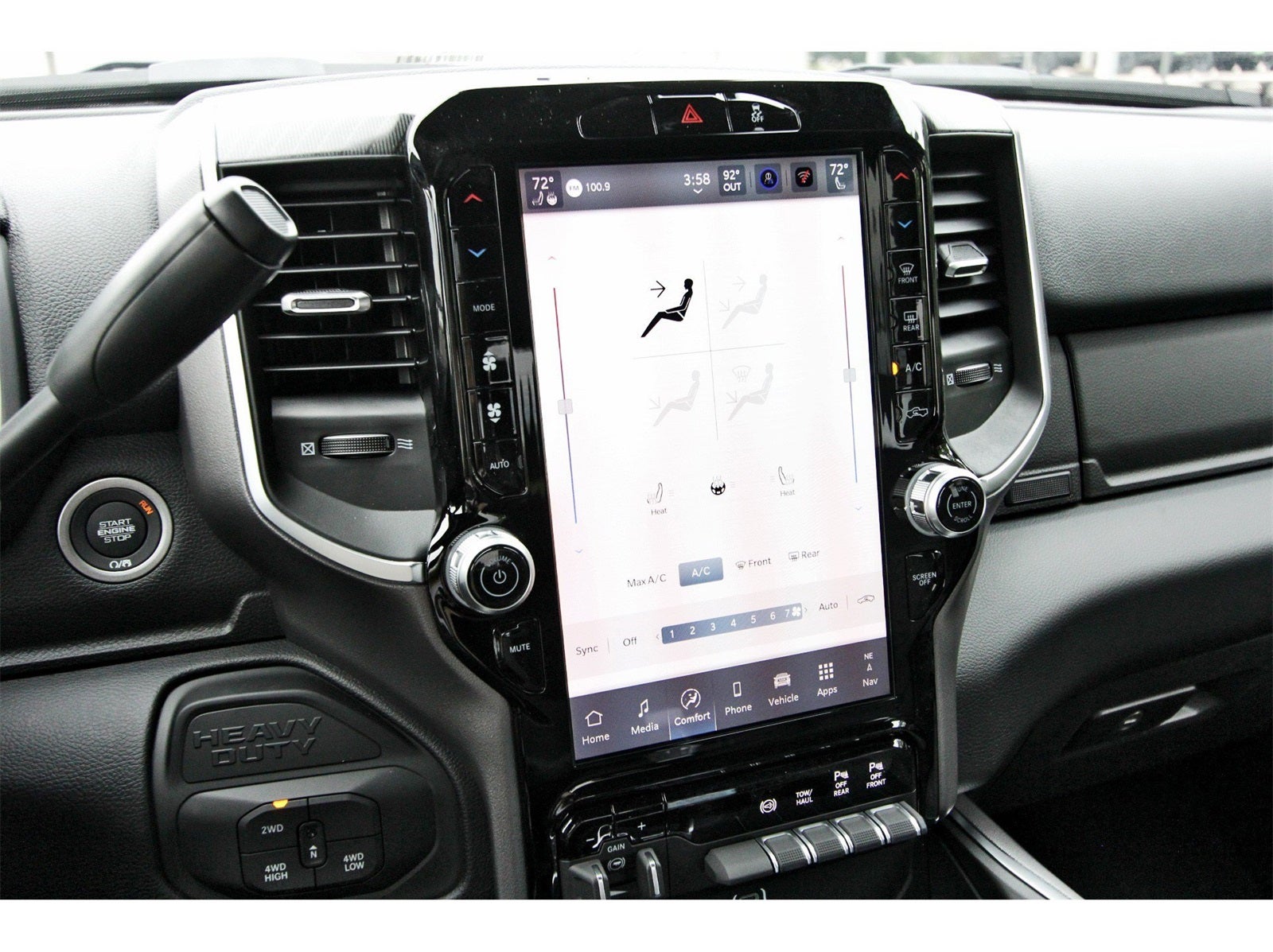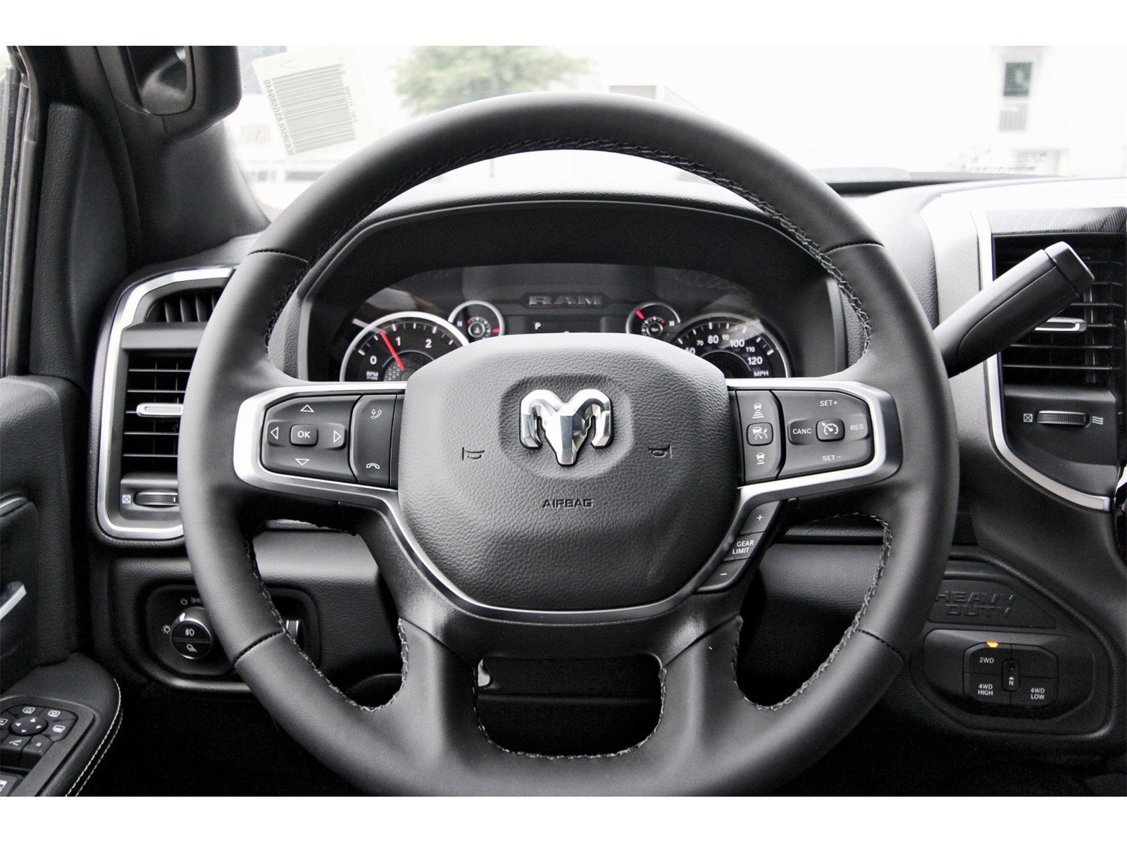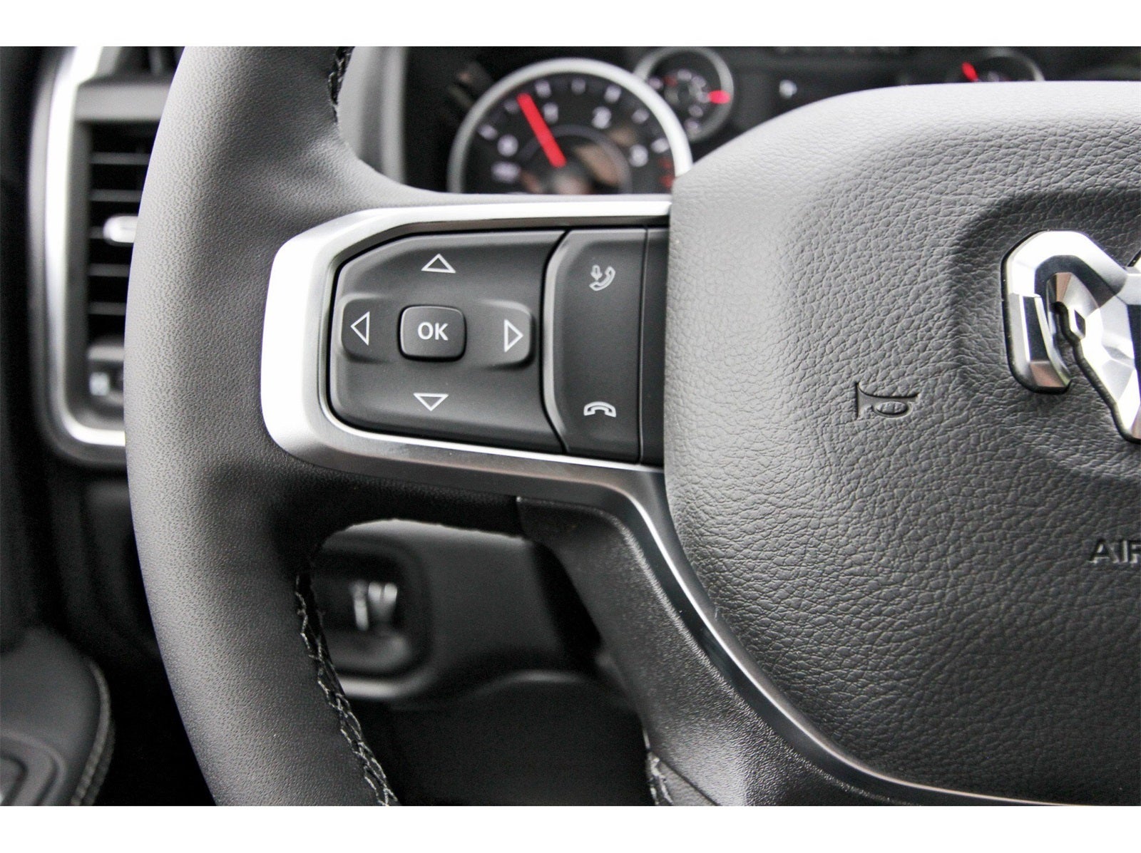 Big Horn Level 1 Plus Equipment Group (12 Touchscreen Display, 2 Way Rear Headrest Seat, 2nd Row In Floor Storage Bins, 4 Way Front Headrests, 40/20/40 Split Bench Seat, 4G LTE Wi-Fi Hot Spot, 9 Alpine Speakers w/Subwoofer, Air Conditioning ATC w/Dual Zone Control, Alexa Built-In, Anti-Spin Differential Rear Axle, Apple CarPlay, Auto Power-Folding Mirrors, Auto-Dimming Rear-View Mirror, Black Exterior Mirrors, Connected Travel & Traffic Services, Connectivity - US/Canada, Dual Glove Boxes, Emergency Vehicle Alert System (EVAS), Exterior Mirrors Courtesy Lamps, Exterior Mirrors w/Heating Element, Exterior Mirrors w/Supplemental Signals, Foam Bottle Insert (Door Trim Panel), Folding Flat Load Floor Storage, Footwell Courtesy Lamp, Forward & Reverse Utility Lights, Front Armrest w/Cupholders, Front Center Seat Cushion Storage, Front Seat Back Map Pockets, Global Telematics Box Module (TBM), Glove Box Lamp, Google Android Auto, GPS Antenna Input, GPS Navigation, HD Radio, Integrated Voice Command w/Bluetooth®, LED Bed Lighting, Locking Lower Glove Box, Luxury Steering Wheel, Manual Adjust 4-Way Front Passenger Seat, Mirror Running Lights, MOPAR Deployable Bed Step, MOPAR Spray In Bedliner, Off-Road Info Pages, Power 2-Way Driver Lumbar Adjust, Power Adjust 8-Way Driver Seat, Power Adjust Mirrors, Power Adjustable Convex Aux Mirrors, Power Heated Folding Telescopic Mirrors, Power Telescoping Mirrors, Premium Cloth 40/20/40 Bench Seat, Radio: Uconnect 5 Nav w/12.0 Display, Rear 60/40 Folding Seat, Rear Dome w/On/Off Switch Lamp, Remote Start System, Remote USB Port - Charge Only, Selectable Tire Fill Alert, SiriusXM Radio Service, SiriusXM w/360L, Steering Wheel Mounted Audio Controls, Storage Tray, and Trailer Tow Pages), Heated Seats & Wheel Group (Heated Front Seats and Heated Steering Wheel), Quick Order Package 24Y Lone Star (Regional) (Lone Star Badge), 4-Wheel Disc Brakes, 5th Wheel/Gooseneck Towing Prep Group, 6 Speakers, ABS brakes, Air Conditioning, Alloy wheels, AM/FM radio: SiriusXM, Apple CarPlay/Android Auto, Brake assist, Bumpers: chrome, Clearance Lamps, Cloth 40/20/40 Bench Seat, Compass, Delay-off headlights, Delete Deployable Bed Step (DISC), Driver door bin, Dual front impact airbags, Dual front side impact airbags, Electronic Stability Control, Engine Block Heater, Front anti-roll bar, Front Center Armrest w/Storage, Front fog lights, Front License Plate Bracket, Front reading lights, Fully automatic headlights, Heated door mirrors, Illuminated entry, Low tire pressure warning, Manual Adjust 4-Way Driver Seat, MOPAR Front & Rear Rubber Floor Mats, Occupant sensing airbag, Outside temperature display, Overhead airbag, Overhead console, Panic alarm, ParkView Rear Back-Up Camera, Passenger door bin, Passenger vanity mirror, Power door mirrors, Power steering, Power windows, Radio data system, Radio: Uconnect 5 w/8.4 Display, Rear anti-roll bar, Rear Folding Seat, Rear seat center armrest, Rear step bumper, Rear window defroster, Remote keyless entry, Security system, Speed control, Tachometer, Tilt steering wheel, Traction control, Trip computer, Turn signal indicator mirrors, Variably intermittent wipers, Vinyl 2nd Row Seat, Voltmeter, and Wheels: 18 x 8.0 Polished Aluminum.