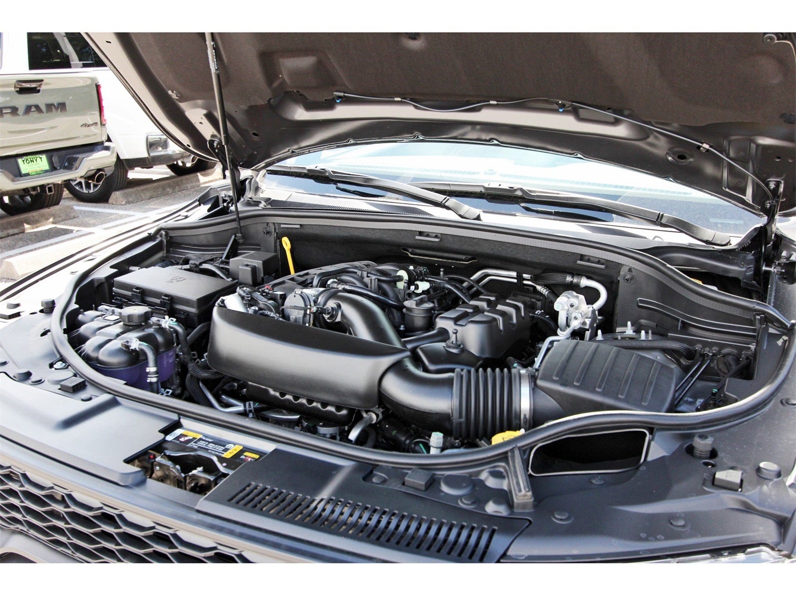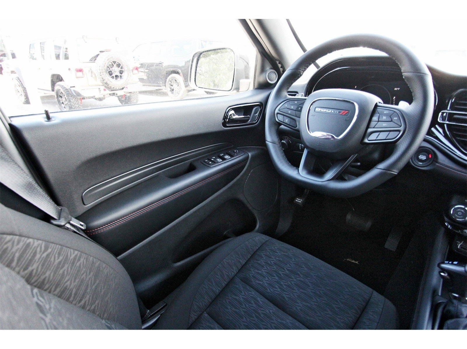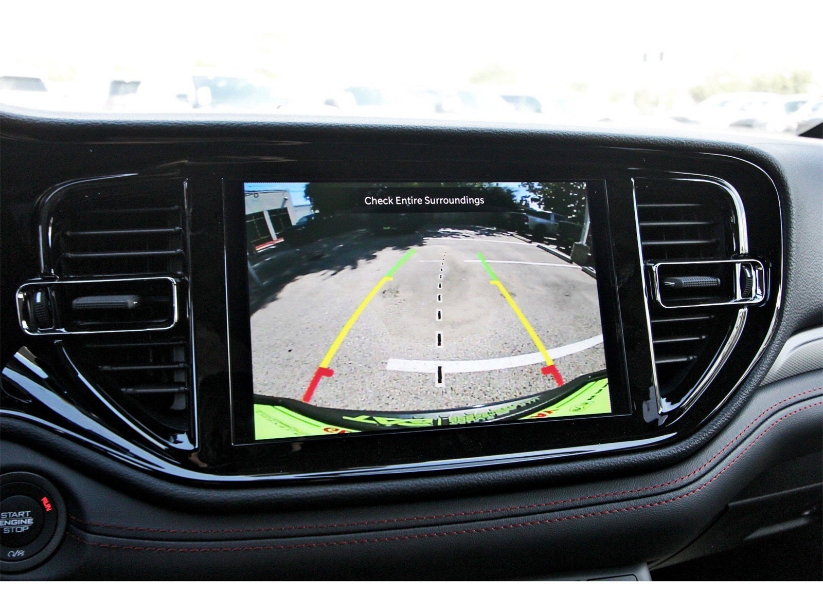 Blacktop Package (Black Roof Rails, Gloss Black Badges, Gloss Black Exterior Mirrors, GT Gloss Black Badging, Integrated Roof Rail Crossbars, Satin Black Dodge Tail Lamp Badge, and Wheels: 20 x 8 Black Noise Aluminum), Quick Order Package 2BD GT, 18 x 8 Painted Aluminum Wheels, 3.27 Rear Axle Ratio, 3rd row seats: split-bench, 4-Wheel Disc Brakes, 6 Speakers, ABS brakes, Air Conditioning, Alloy wheels, AM/FM radio: SiriusXM w/360L, Apple CarPlay/Android Auto, Auto-dimming Rear-View mirror, Auto-leveling suspension, Automatic temperature control, Brake assist, Bumpers: body-color, Cloth Bucket Seats with Shift Insert, Compass, Delay-off headlights, Driver door bin, Driver vanity mirror, Dual front impact airbags, Dual front side impact airbags, Electronic Stability Control, Emergency communication system: Dodge Connect, Four wheel independent suspension, Front anti-roll bar, Front Bucket Seats, Front Center Armrest w/Storage, Front dual zone A/C, Front License Plate Bracket, Front reading lights, Fully automatic headlights, Garage door transmitter, Heated door mirrors, Heated front seats, Heated steering wheel, Illuminated entry, Knee airbag, Leather steering wheel, Low tire pressure warning, Navigation System, Occupant sensing airbag, Outside temperature display, Overhead airbag, Overhead console, Panic alarm, ParkView Rear Back-Up Camera, Passenger door bin, Passenger vanity mirror, Power door mirrors, Power driver seat, Power Liftgate, Power steering, Power windows, Radio data system, Radio: Uconnect 5 Nav with 10.1 Display, Rear air conditioning, Rear anti-roll bar, Rear Load Leveling Suspension, Rear reading lights, Rear seat center armrest, Rear window defroster, Rear window wiper, Remote keyless entry, Speed control, Speed-sensing steering, Speed-Sensitive Wipers, Split folding rear seat, Spoiler, Sport steering wheel, Steering wheel mounted audio controls, Tachometer, Telescoping steering wheel, Tilt steering wheel, Traction control, Trip computer, Variably intermittent wipers, and Voltmeter.