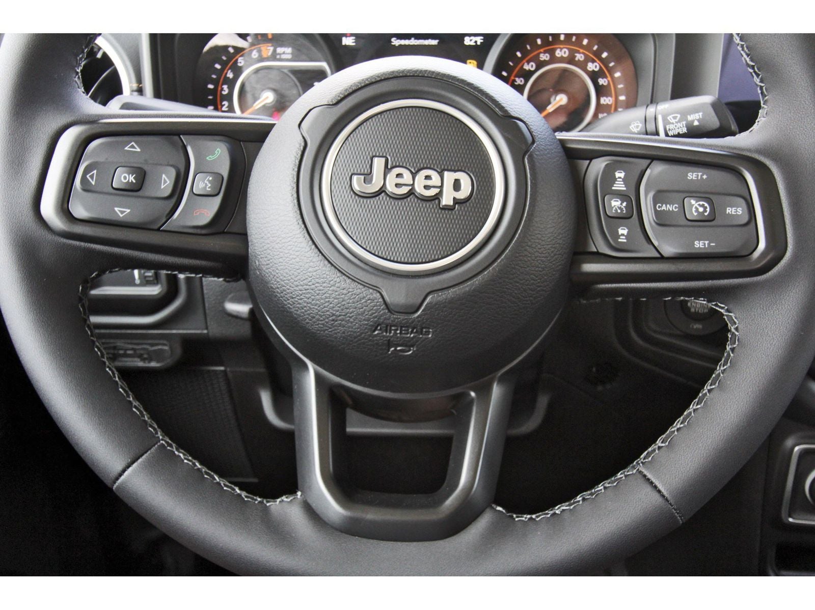 LED Headlamp and Fog Lamp Group (Daytime Running Lamps LED Accents, Front LED Fog Lamps, and LED Premium Reflector Headlamps), Quick Order Package 24H Sahara (110 Mph Vehicle Max Speed Calibration, 2-Piece Body Color Fender Flares, Advanced Brake Assist, Air Conditioning with Auto Temp Control, Automatic Headlamps, Body Color 3-Piece Hard Top, Central ADAS Decision Module (CADM), Cluster 7.0 TFT Color Display, Corning Gorilla Glass, Daytime Running Lamp System, Deep Tint Sunscreen Windows, Emergency/Assistance Call, Freedom Panel Storage Bag, Front Door Locks 2-Door Passive Entry, Full Length Floor Console Premium Armrest, Full Speed Forward Collision Warning Plus, Hard Seat Back, Heated Front Seats, Heated Steering Wheel, Leather Wrapped Park Brake Handle, Leather Wrapped Shift Knob, Normal Duty Plus Suspension, Power 4-Way Driver Lumbar Adjust, Power 4-Way Passenger Lumbar Adjust, Power Adjust 8-Way Driver Seat, Power Adjust 8-Way Front Passenger Seat, Power Heated Mirrors, Premium Door Trim Panel, Premium McKinley Trimmed Seats, Premium Wrapped Steering Wheel, Rear Armrest with Cupholder Seat, Rear Sliding Window, Rear Window Defroster, Remote Start System, Sahara, Sahara Badge Neutral Gray, Security Alarm, Sun Visors with Illuminated Vanity Mirrors, Universal Garage Door Opener, and Wheels: 18 x 7.5 Machined/Painted Gray), 12.3 Touchscreen Display, 3.73 Rear Axle Ratio, 4-Wheel Disc Brakes, 4G LTE Wi-Fi Hot Spot, 8 Speakers, ABS brakes, Air Conditioning, Alexa Built-in, AM/FM radio: SiriusXM with 360L, Apple CarPlay, Apple CarPlay/Android Auto, Brake assist, Compass, Connectivity - US/Canada, Delay-off headlights, Driver door bin, Driver vanity mirror, Dual front impact airbags, Dual front side impact airbags, Electronic Stability Control, For Details, Visit DriveUconnect.com, Front anti-roll bar, Front Bucket Seats, Front Center Armrest w/Storage, Front fog lights, Front License Plate Bracket, Front reading lights, Google Android Auto, Illuminated entry, Integrated Center Stack Radio, Integrated roll-over protection, Low tire pressure warning, MOPAR All-Weather Slush Mats, Normal Duty Suspension, Occupant sensing airbag, Outside temperature display, Overhead airbag, Panic alarm, ParkView Rear Back-Up Camera, Passenger door bin, Passenger vanity mirror, Power steering, Power windows, Radio data system, Radio: Uconnect 5 with 12.3 Display, Rear anti-roll bar, Rear reading lights, Remote keyless entry, SiriusXM Radio Service, SiriusXM with 360L, Speed control, Split folding rear seat, Steering wheel mounted audio controls, Tachometer, Telescoping steering wheel, Tilt steering wheel, Traction control, Trip computer, USB Host Flip, Variably intermittent wipers, Voltmeter, and Wheels: 17 x 7.5 Black Steel StyleD.
