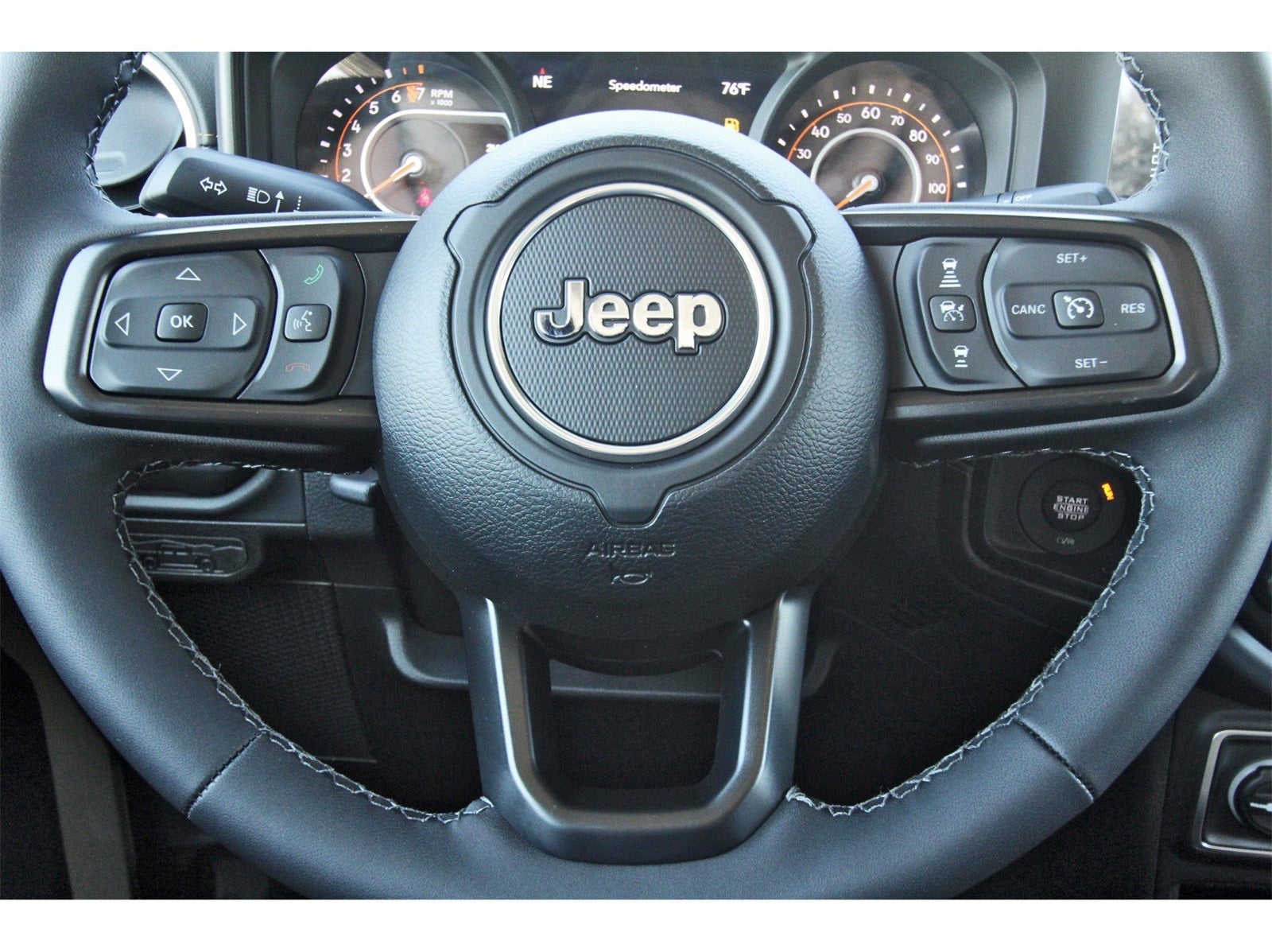 Quick Order Package 24H Sahara (110 Mph Vehicle Max Speed Calibration, 2-Piece Body Color Fender Flares, Advanced Brake Assist, Air Conditioning with Auto Temp Control, Automatic Headlamps, Body Color 3-Piece Hard Top, Central ADAS Decision Module (CADM), Cluster 7.0 TFT Color Display, Corning Gorilla Glass, Daytime Running Lamp System, Deep Tint Sunscreen Windows, Emergency/Assistance Call, Freedom Panel Storage Bag, Front Door Locks 2-Door Passive Entry, Full Length Floor Console Premium Armrest, Full Speed Forward Collision Warning Plus, Hard Seat Back, Heated Front Seats, Heated Steering Wheel, Leather Wrapped Park Brake Handle, Leather Wrapped Shift Knob, Normal Duty Plus Suspension, Power 4-Way Driver Lumbar Adjust, Power 4-Way Passenger Lumbar Adjust, Power Adjust 8-Way Driver Seat, Power Adjust 8-Way Front Passenger Seat, Power Heated Mirrors, Premium Door Trim Panel, Premium McKinley Trimmed Seats, Premium Wrapped Steering Wheel, Rear Armrest with Cupholder Seat, Rear Sliding Window, Rear Window Defroster, Remote Start System, Sahara, Sahara Badge Neutral Gray, Security Alarm, Sun Visors with Illuminated Vanity Mirrors, Universal Garage Door Opener, and Wheels: 18 x 7.5 Machined/Painted Gray), 12.3 Touchscreen Display, 3.73 Rear Axle Ratio, 4-Wheel Disc Brakes, 4G LTE Wi-Fi Hot Spot, 8 Speakers, ABS brakes, Air Conditioning, Alexa Built-in, AM/FM radio: SiriusXM with 360L, Apple CarPlay, Apple CarPlay/Android Auto, Brake assist, Compass, Connectivity - US/Canada, Delay-off headlights, Driver door bin, Driver vanity mirror, Dual front impact airbags, Dual front side impact airbags, Electronic Stability Control, For Details, Visit DriveUconnect.com, Front anti-roll bar, Front Bucket Seats, Front Center Armrest w/Storage, Front fog lights, Front License Plate Bracket, Front reading lights, Google Android Auto, Illuminated entry, Integrated Center Stack Radio, Integrated roll-over protection, Low tire pressure warning, MOPAR All-Weather Slush Mats, Normal Duty Suspension, Occupant sensing airbag, Outside temperature display, Overhead airbag, Panic alarm, ParkView Rear Back-Up Camera, Passenger door bin, Passenger vanity mirror, Power steering, Power windows, Radio data system, Radio: Uconnect 5 with 12.3 Display, Rear anti-roll bar, Rear reading lights, Remote keyless entry, SiriusXM Radio Service, SiriusXM with 360L, Speed control, Split folding rear seat, Steering wheel mounted audio controls, Tachometer, Telescoping steering wheel, Tilt steering wheel, Traction control, Trip computer, USB Host Flip, Variably intermittent wipers, Voltmeter, and Wheels: 17 x 7.5 Black Steel StyleD.
