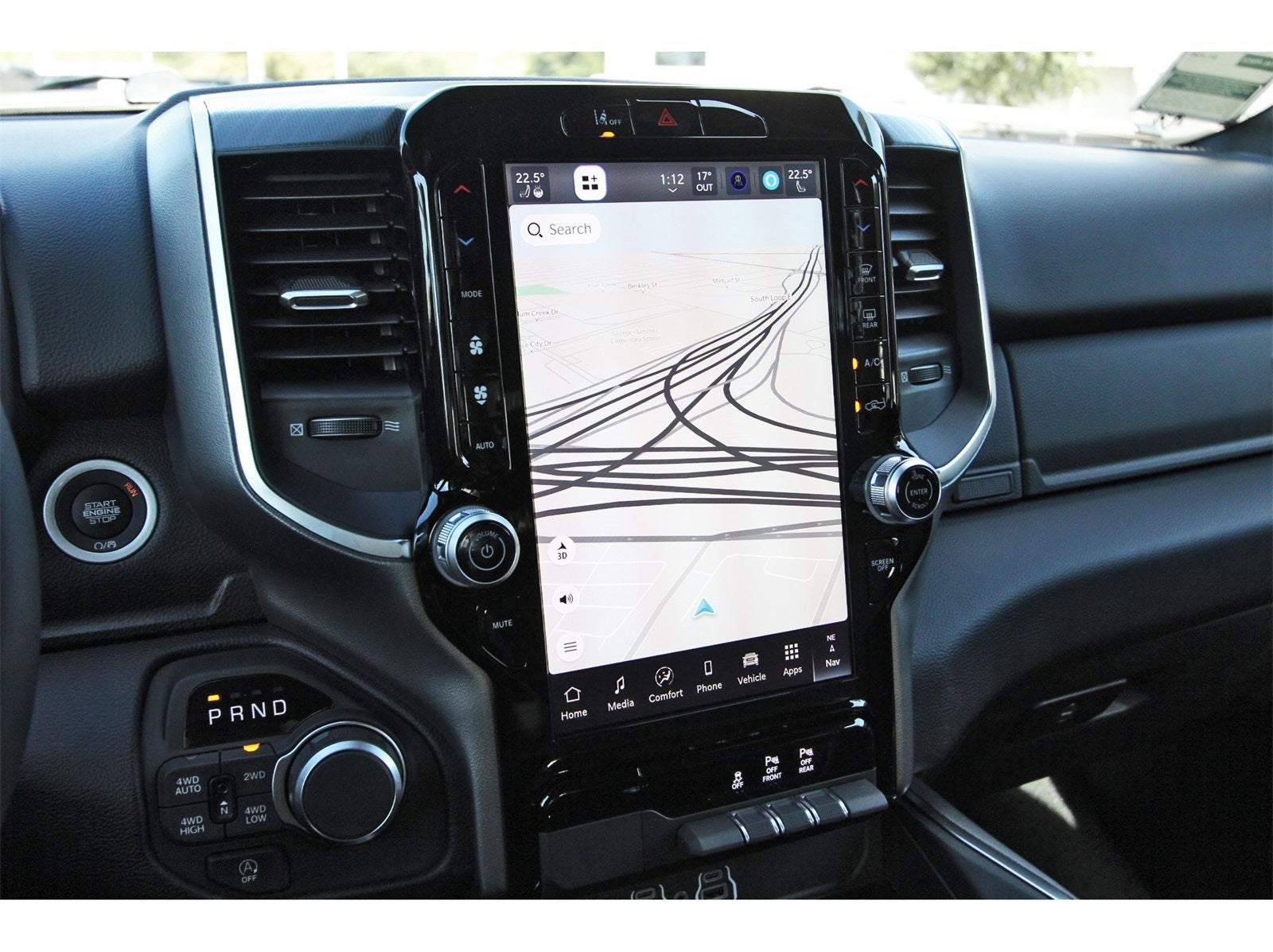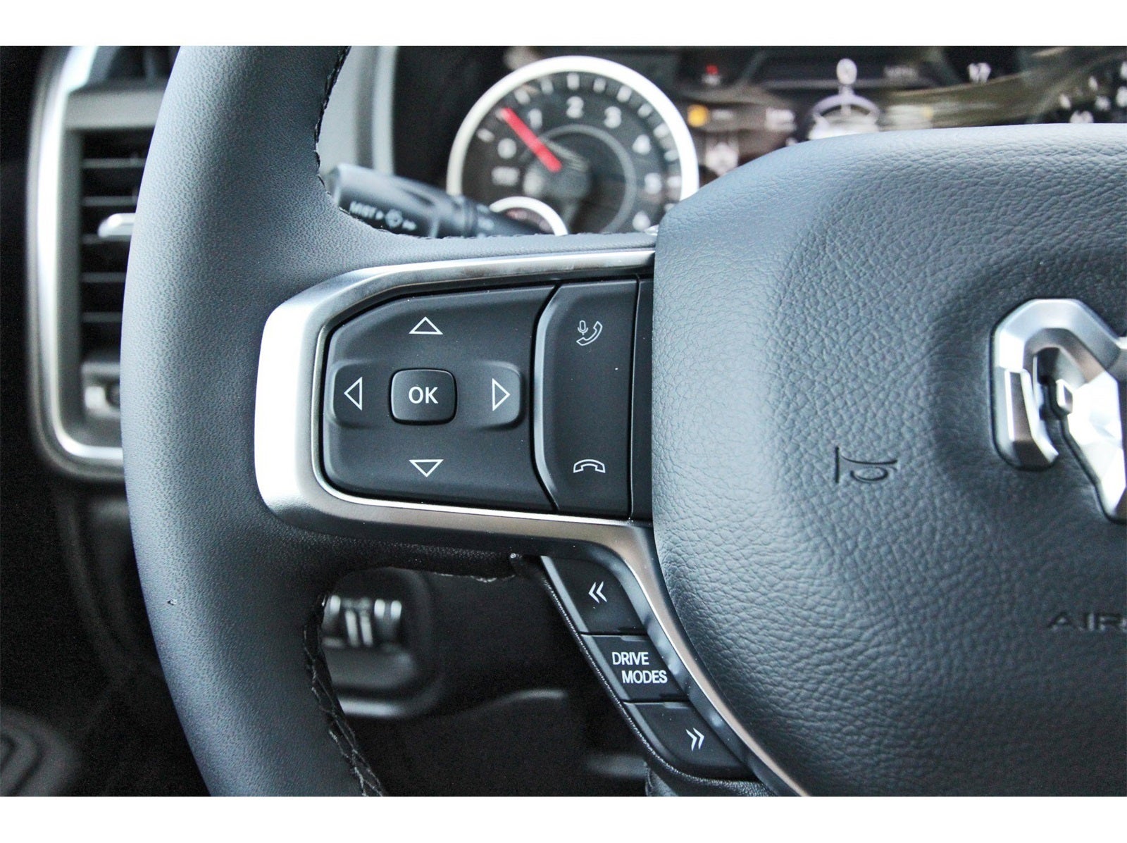 Big Horn Level 2 Equipment Group (115V Auxiliary Power Outlet, 115V Auxiliary Rear Power Outlet, 12 Touchscreen Display, 2nd Row in Floor Storage Bins, 3 Rear Seat Head Restraints, 4 Way Front Headrests, 400W Inverter, 4G LTE Wi-Fi Hot Spot, 9 Amplified Speakers with Subwoofer, Air Conditioning ATC with Dual Zone Control, Apple CarPlay, Auto Power-Folding Mirrors, Auto-Dimming Exterior Driver Mirror, Auto-Dimming Rear-View Mirror, Black Exterior Mirrors, Black Premium Power Mirrors, Body Color Fender Flares, Bucket Seats, Center Console Parts Module, Cluster 7.0 TFT Color Display, Configurable Drive Mode, Connected Travel and Traffic Services, Connectivity - US/Canada, Convex Wide-Angle Exterior Mirror Insert, Deluxe Cloth Bucket Seats, Disassociated Touchscreen Display, Exterior Mirrors Courtesy Lamps, Exterior Mirrors with Heating Element, Exterior Mirrors with Supplemental Signals, Front Seat Back Map Pockets, Full Length Floor Console, Global Telematics Box Module, Glove Box Lamp, Google Android Auto, GPS Antenna Input, GPS Navigation, HD Radio, Heated Front Seats, Heated Steering Wheel, Integrated Center Stack Radio, Integrated Voice Command with Bluetooth®, Leather Wrapped Steering Wheel, LED Dome Lamp with on/Off Switch, LED Footwell Lighting, Manual Adjust 4-Way Front Passenger Seat, Media Hub with 2 Charge Only USBs, Overhead LED Lamps, Power 2-Way Driver Lumbar Adjust, Power Adjust 8-Way Driver Seat, Power Adjustable Pedals, Premium Overhead Console, Radio: Uconnect 5 Navigation with 12.0 Display, Rear 60/40 Folding Seat, Rear Center Armrest, Rear Power Sliding Window, Rear Window Defroster, Remote Tailgate Release, Security Alarm, SiriusXM Radio Service, SiriusXM with 360L, Steering Wheel Mounted Audio Controls, Sun Visors with Illuminated Vanity Mirrors, Universal Garage Door Opener, and USB Host Flip), Night Edition (Accent Color Door Handles, Accent Color Premium Power Mirrors, Accent Color Tailgate Handle, Anti-Spin Differential Rear Axle, Black Exterior Truck Badging, Black Headlamp Bezels, Black Interior Accents, Black Painted Exterior Mirrors Caps, Black Tail Lamp Bezels, Body Color Front Bumper, Body Color Rear Bumper with Step Pads, Dual Exhaust with Black Tips, Grille Black Surround Black Mesh, RAM Grille Badge - Black, and Wheels: 20 x 9.0 Aluminum Painted Clad), Quick Order Package 27R Lone Star (Lone Star Badge), 4-Wheel Disc Brakes, 48V Belt Starter Generator, 6 Speakers, ABS brakes, Air Conditioning, Alloy wheels, AM/FM radio, Apple CarPlay/Android Auto, Auto High-beam Headlights, Brake assist, Bumpers: chrome, Cloth Bucket Seats, Compass, Delay-off headlights, Driver door bin, Dual front impact airbags, Dual front side impact airbags, Electronic Stability Control, Front anti-roll bar, Front Bucket Seats, Front Center Armrest w/Storage, Front fog lights, Front License Plate Bracket, Front reading lights, Front wheel independent suspension, Fully automatic headlights, Heated door mirrors, Illuminated entry, Low tire pressure warning, Manual Adjust 4-Way Driver Seat, Manual Folding Exterior Mirrors, MOPAR Front and Rear Rubber Floor Mats, Occupant sensing airbag, Outside temperature display, Overhead airbag, Overhead console, Panic alarm, ParkView Rear Back-Up Camera, Passenger door bin, Passenger vanity mirror, Power door mirrors, Power steering, Power windows, Radio data system, Radio: Uconnect 5 W with 8.4 Display, RAM Grille Badge - Chrome, Rear anti-roll bar, Rear step bumper, Rear Wheelhouse Liners, Remote keyless entry, Speed control, Supplier Part Tracking (J-1), Tachometer, Telescoping steering wheel, Tilt steering wheel, Traction control, Trip computer, Variably intermittent wipers, and Voltmeter.