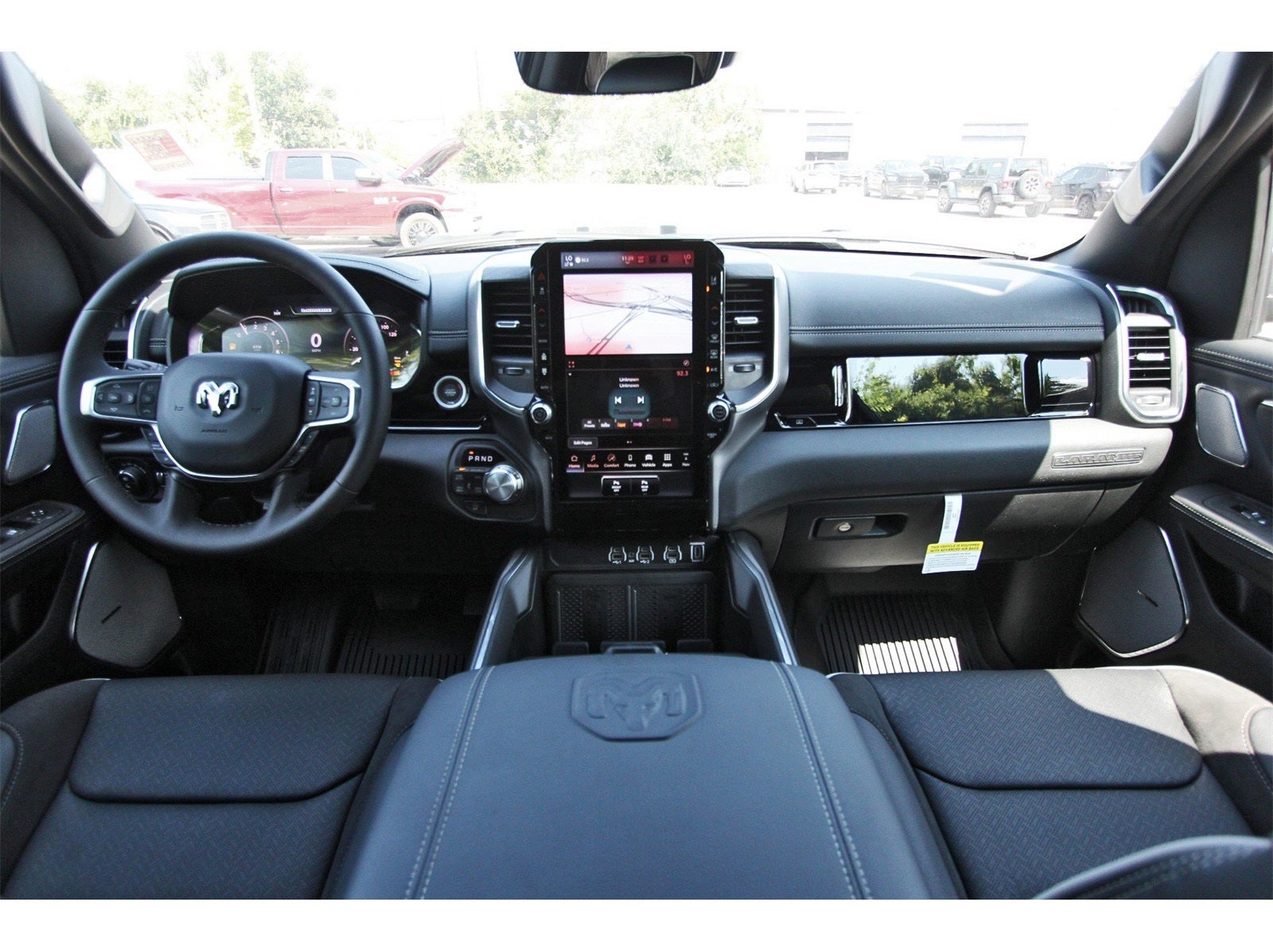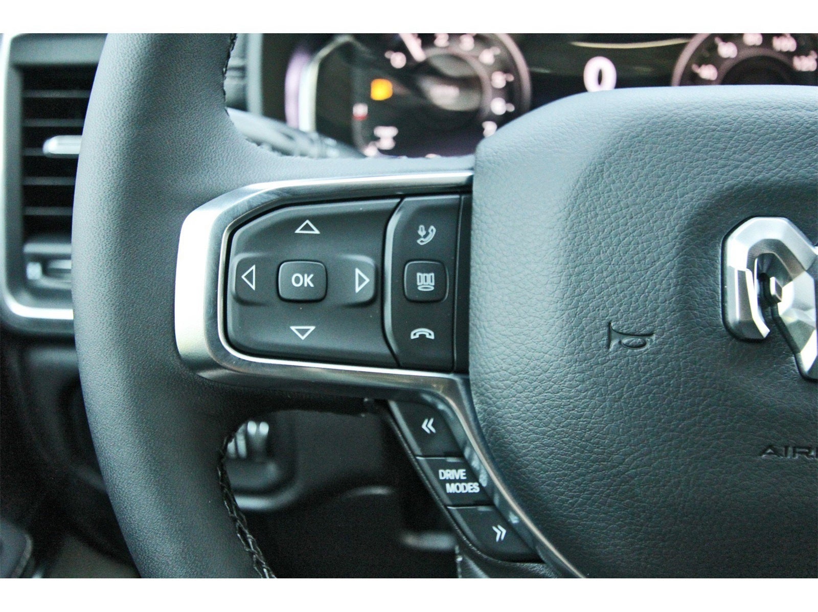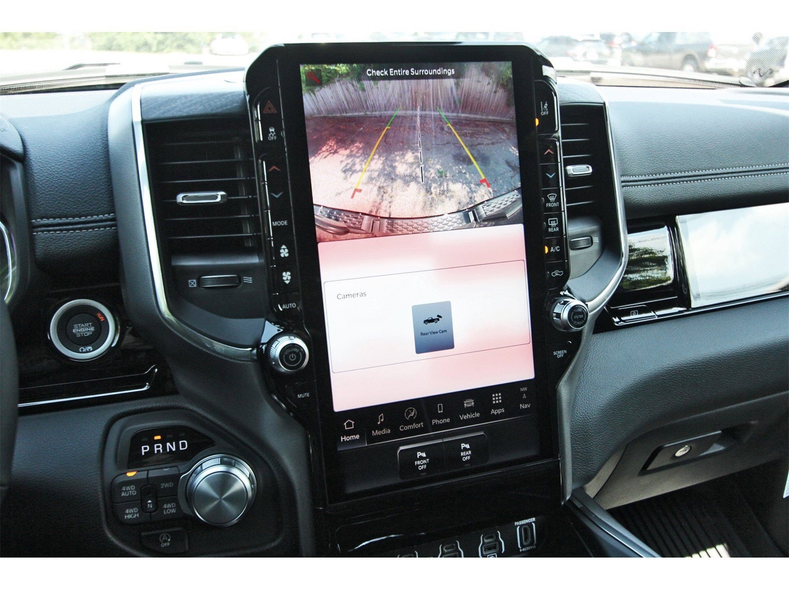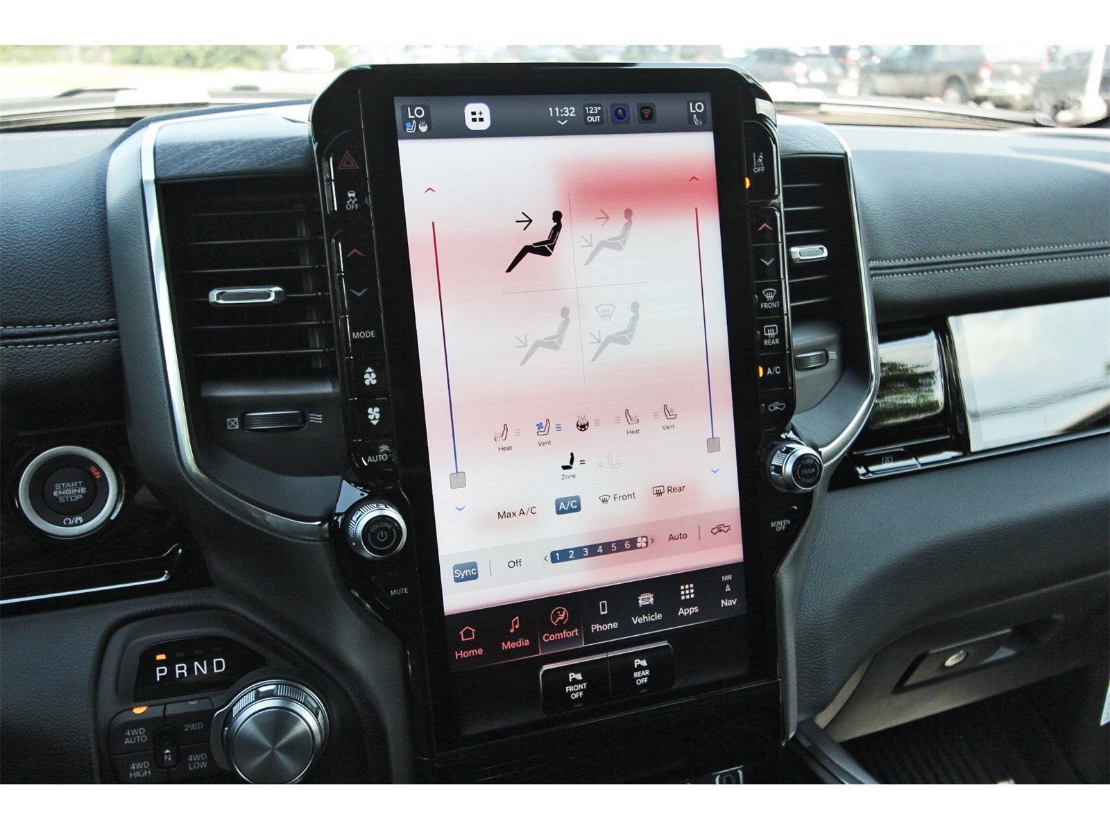 Laramie Level 2 Equipment Group (14.4 Touchscreen Display, 4G LTE Wi-Fi Hot Spot, Cluster 12 TFT Color Display, Connected Travel and Traffic Services, Connectivity - US/Canada, Front Passenger Interactive Display, GPS Navigation, Harman/Kardon 19 Speaker Premium Sound, Integrated Center Stack Radio, Integrated Voice Command with Bluetooth®, Power Tailgate, Radio: Uconnect 5 Nav with 14.4 Display, Rain Sensitive Windshield Wipers, SiriusXM Radio Service, SiriusXM with 360L, and USB Host Flip), Night Edition (Accent Color Door Handles, Accent Color Premium Power Mirrors, Accent Color Tailgate Handle, Anti-Spin Differential Rear Axle, Auto Power-Folding Mirrors, Auto-Dimming Exterior Driver Mirror, Black Exterior Truck Badging, Black Headlamp Bezels, Black Interior Accents, Black Painted Exterior Mirrors Caps, Black Tail Lamp Bezels, Body Color Front Bumper, Body Color Rear Bumper with Step Pads, Convex Wide-Angle Exterior Mirror Insert, Dual Exhaust with Black Tips, Exterior Mirrors Approach Lamps, Exterior Mirrors Courtesy Lamps, Exterior Mirrors with Heating Element, Exterior Mirrors with Memory, Exterior Mirrors with Supplemental Signals, Grille Surround 3 Black Texture 2 Black, Pirelli Brand Tires, Proximity Approach/Departure Lamps, RAM Grille Badge - Black, Sport Performance Hood, and Wheels: 22 x 9 Forged Aluminum), Quick Order Package 21H Laramie, 10 Speakers, 3.55 Rear Axle Ratio, 4-Wheel Disc Brakes, ABS brakes, Active Noise Control System, Air Conditioning, Alloy wheels, AM/FM radio: SiriusXM with 360L, Apple CarPlay/Android Auto, Audio memory, Auto High-beam Headlights, Auto-dimming door mirrors, Auto-dimming Rear-View mirror, Automatic temperature control, Brake assist, Bumpers: chrome, Chrome Exterior Mirrors, Compass, Delay-off headlights, Driver door bin, Driver vanity mirror, Dual front impact airbags, Dual front side impact airbags, Electronic Stability Control, Front anti-roll bar, Front Bucket Seats, Front Center Armrest w/Storage, Front dual zone A/C, Front fog lights, Front License Plate Bracket, Front reading lights, Front wheel independent suspension, Fully automatic headlights, Garage door transmitter, Heated door mirrors, Heated front seats, Heated rear seats, Heated steering wheel, Illuminated entry, Leather steering wheel, Leather Trimmed Bucket Seats, Low tire pressure warning, Memory seat, MOPAR Front and Rear Rubber Floor Mats, Navigation System, Occupant sensing airbag, Off-Road Information Pages, Outside temperature display, Overhead airbag, Overhead console, Panic alarm, ParkView Rear Back-Up Camera, Passenger door bin, Passenger vanity mirror, Power door mirrors, Power driver seat, Power passenger seat, Power steering, Power windows, Radio data system, Radio: Uconnect 5 Navigation with 12.0 Display, RAM Grille Badge - Chrome, Rear anti-roll bar, Rear reading lights, Rear seat center armrest, Rear step bumper, Remote keyless entry, Security system, Speed control, Split folding rear seat, Steering wheel mounted audio controls, Tachometer, Telescoping steering wheel, Tilt steering wheel, Traction control, Trip computer, Turn signal indicator mirrors, Variably intermittent wipers, Ventilated front seats, Voltmeter, and Wheels: 20 x 9 Premium Paint/Polish.