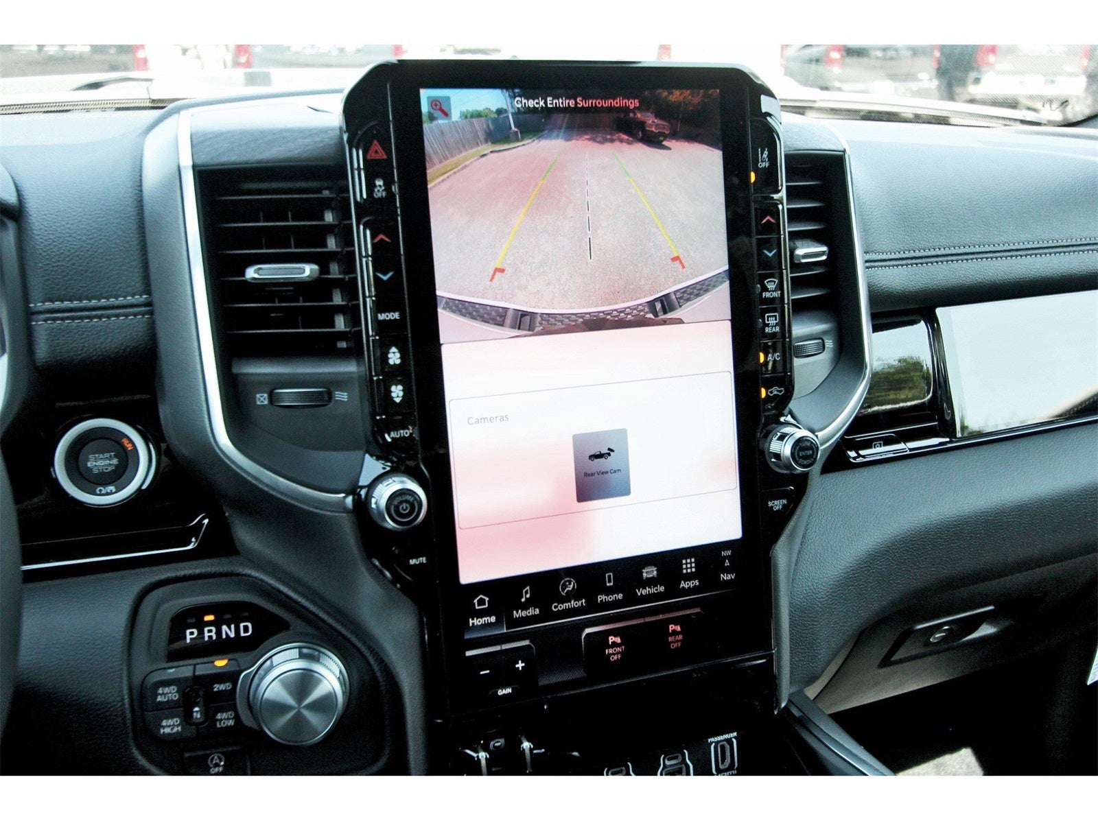Bed Utility Group, Laramie Level 2 Equipment Group (4G LTE Wi-Fi Hot Spot, Connectivity - US/Canada, GPS Navigation, Integrated Center Stack Radio, SiriusXM Radio Service, and USB Host Flip), Night Edition (Anti-Spin Differential Rear Axle, Auto Power-Folding Mirrors, Auto-Dimming Exterior Driver Mirror, Black Interior Accents, Convex Wide-Angle Exterior Mirror Insert, Exterior Mirrors Courtesy Lamps, and Wheels: 22 x 9 Forged Aluminum), Quick Order Package 21H Laramie, 10 Speakers, 4-Wheel Disc Brakes, ABS brakes, Air Conditioning, Alloy wheels, AM/FM radio: SiriusXM with 360L, Apple CarPlay/Android Auto, Audio memory, Auto High-beam Headlights, Auto-dimming door mirrors, Auto-dimming Rear-View mirror, Automatic temperature control, Brake assist, Bumpers: chrome, Chrome Exterior Mirrors, Compass, Delay-off headlights, Dome Dual LED Reading Lamp, Driver door bin, Driver vanity mirror, Dual front impact airbags, Dual front side impact airbags, Dual-Pane Panoramic Sunroof, Electronic Stability Control, Front anti-roll bar, Front Bucket Seats, Front Center Armrest w/Storage, Front dual zone A/C, Front fog lights, Front License Plate Bracket, Front reading lights, Front wheel independent suspension, Fully automatic headlights, Garage door transmitter, Heated door mirrors, Heated front seats, Heated rear seats, Heated steering wheel, Illuminated entry, Leather steering wheel, Leather Trimmed Bucket Seats, LED Dome/Reading Lamp, Low tire pressure warning, Memory seat, Multi-Function Tailgate, Navigation System, Occupant sensing airbag, Off-Road Information Pages, Outside temperature display, Overhead airbag, Overhead console, Panic alarm, ParkView Rear Back-Up Camera, Passenger door bin, Passenger vanity mirror, Power Deployable Running Boards, Power door mirrors, Power driver seat, Power passenger seat, Power steering, Power windows, Radio data system, RAM Grille Badge - Chrome, RAM's Head Badge, Rear anti-roll bar, Rear reading lights, Rear seat center armrest, Rear step bumper, Remote keyless entry, Security system, Speed control, Split folding rear seat, Steering wheel mounted audio controls, Tachometer, Telescoping steering wheel, Tilt steering wheel, Traction control, Trailer Brake Control, Trip computer, Turn signal indicator mirrors, Variably intermittent wipers, Ventilated front seats, Voltmeter, and Wheels: 20 x 9 Premium Paint/Polish.