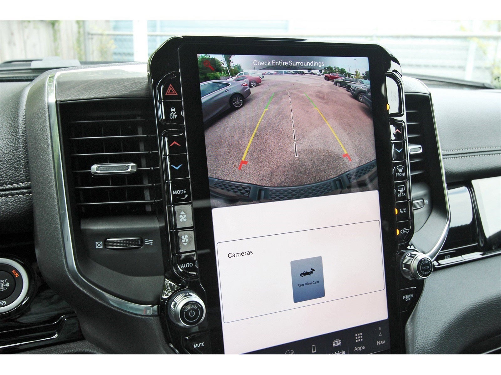 Laramie Level 2 Equipment Group (14.4 Touchscreen Display, 4G LTE Wi-Fi Hot Spot, Cluster 12 TFT Color Display, Connected Travel and Traffic Services, Connectivity - US/Canada, Front Passenger Interactive Display, GPS Navigation, Harman/Kardon 19 Speaker Premium Sound, Integrated Center Stack Radio, Integrated Voice Command with Bluetooth®, Power Tailgate, Radio: Uconnect 5 Nav with 14.4 Display, Rain Sensitive Windshield Wipers, SiriusXM Radio Service, SiriusXM with 360L, and USB Host Flip), Night Edition (Accent Color Door Handles, Accent Color Premium Power Mirrors, Accent Color Tailgate Handle, Anti-Spin Differential Rear Axle, Auto Power-Folding Mirrors, Auto-Dimming Exterior Driver Mirror, Black Exterior Truck Badging, Black Headlamp Bezels, Black Interior Accents, Black Painted Exterior Mirrors Caps, Black Tail Lamp Bezels, Body Color Front Bumper, Body Color Rear Bumper with Step Pads, Convex Wide-Angle Exterior Mirror Insert, Dual Exhaust with Black Tips, Exterior Mirrors Approach Lamps, Exterior Mirrors Courtesy Lamps, Exterior Mirrors with Heating Element, Exterior Mirrors with Memory, Exterior Mirrors with Supplemental Signals, Grille Surround 3 Black Texture 2 Black, Pirelli Brand Tires, Proximity Approach/Departure Lamps, RAM Grille Badge - Black, Sport Performance Hood, and Wheels: 22 x 9 Forged Aluminum), Quick Order Package 21H Laramie, 10 Speakers, 3.55 Rear Axle Ratio, 4-Wheel Disc Brakes, ABS brakes, Active Noise Control System, Air Conditioning, Alloy wheels, AM/FM radio: SiriusXM with 360L, Apple CarPlay/Android Auto, Audio memory, Auto High-beam Headlights, Auto-dimming door mirrors, Auto-dimming Rear-View mirror, Automatic temperature control, Brake assist, Bumpers: chrome, Chrome Exterior Mirrors, Compass, Delay-off headlights, Dome Dual LED Reading Lamp, Driver door bin, Driver vanity mirror, Dual front impact airbags, Dual front side impact airbags, Dual-Pane Panoramic Sunroof, Electronic Stability Control, Front anti-roll bar, Front Bucket Seats, Front Center Armrest w/Storage, Front dual zone A/C, Front fog lights, Front License Plate Bracket, Front reading lights, Front wheel independent suspension, Fully automatic headlights, Garage door transmitter, Heated door mirrors, Heated front seats, Heated rear seats, Heated steering wheel, Illuminated entry, Leather steering wheel, Leather Trimmed Bucket Seats, LED Dome/Reading Lamp, Low tire pressure warning, Memory seat, MOPAR Front and Rear Rubber Floor Mats, Navigation System, Occupant sensing airbag, Off-Road Information Pages, Outside temperature display, Overhead airbag, Overhead console, Panic alarm, ParkView Rear Back-Up Camera, Passenger door bin, Passenger vanity mirror, Power Deployable Running Boards, Power door mirrors, Power driver seat, Power passenger seat, Power steering, Power windows, Radio data system, Radio: Uconnect 5 Navigation with 12.0 Display, RAM Grille Badge - Chrome, Rear anti-roll bar, Rear reading lights, Rear seat center armrest, Rear step bumper, Remote keyless entry, Security system, Speed control, Split folding rear seat, Steering wheel mounted audio controls, Tachometer, Telescoping steering wheel, Tilt steering wheel, Traction control, Trip computer, Turn signal indicator mirrors, Variably intermittent wipers, Ventilated front seats, Voltmeter, and Wheels: 20 x 9 Premium Paint/Polish.
