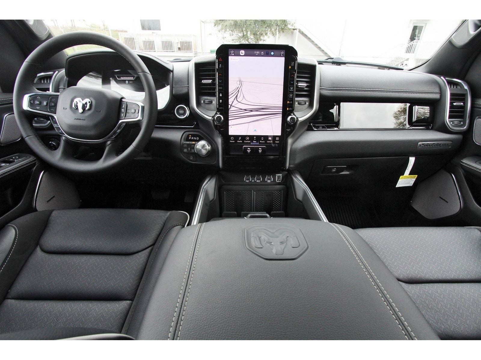 Laramie Level 2 Equipment Group (14.4 Touchscreen Display, 4G LTE Wi-Fi Hot Spot, Cluster 12 TFT Color Display, Connected Travel and Traffic Services, Connectivity - US/Canada, Front Passenger Interactive Display, GPS Navigation, Harman/Kardon 19 Speaker Premium Sound, Integrated Center Stack Radio, Integrated Voice Command with Bluetooth®, Power Tailgate, Radio: Uconnect 5 Nav with 14.4 Display, Rain Sensitive Windshield Wipers, SiriusXM Radio Service, SiriusXM with 360L, and USB Host Flip), Night Edition (Accent Color Door Handles, Accent Color Premium Power Mirrors, Accent Color Tailgate Handle, Anti-Spin Differential Rear Axle, Auto Power-Folding Mirrors, Auto-Dimming Exterior Driver Mirror, Black Exterior Truck Badging, Black Headlamp Bezels, Black Interior Accents, Black Painted Exterior Mirrors Caps, Black Tail Lamp Bezels, Body Color Front Bumper, Body Color Rear Bumper with Step Pads, Convex Wide-Angle Exterior Mirror Insert, Dual Exhaust with Black Tips, Exterior Mirrors Approach Lamps, Exterior Mirrors Courtesy Lamps, Exterior Mirrors with Heating Element, Exterior Mirrors with Memory, Exterior Mirrors with Supplemental Signals, Grille Surround 3 Black Texture 2 Black, Pirelli Brand Tires, Proximity Approach/Departure Lamps, RAM Grille Badge - Black, Sport Performance Hood, and Wheels: 22 x 9 Forged Aluminum), Quick Order Package 27H Laramie, 10 Speakers, 4-Wheel Disc Brakes, ABS brakes, Active Noise Control System, Adjustable pedals, Air Conditioning, Alloy wheels, AM/FM radio: SiriusXM with 360L, Apple CarPlay/Android Auto, Audio memory, Auto High-beam Headlights, Auto-dimming door mirrors, Auto-dimming Rear-View mirror, Automatic temperature control, Brake assist, Bumpers: chrome, Chrome Exterior Mirrors, Compass, Delay-off headlights, Driver door bin, Driver vanity mirror, Dual front impact airbags, Dual front side impact airbags, Electronic Stability Control, Front anti-roll bar, Front Bucket Seats, Front Center Armrest w/Storage, Front dual zone A/C, Front fog lights, Front License Plate Bracket, Front reading lights, Front wheel independent suspension, Fully automatic headlights, Garage door transmitter, Heated door mirrors, Heated front seats, Heated rear seats, Heated steering wheel, Illuminated entry, Leather steering wheel, Leather Trimmed Bucket Seats, Low tire pressure warning, Memory seat, MOPAR Front and Rear Rubber Floor Mats, Navigation System, Occupant sensing airbag, Off-Road Information Pages, Outside temperature display, Overhead airbag, Overhead console, Panic alarm, ParkView Rear Back-Up Camera, Passenger door bin, Passenger vanity mirror, Pedal memory, Power door mirrors, Power driver seat, Power passenger seat, Power steering, Power windows, Radio data system, Radio: Uconnect 5 Navigation with 12.0 Display, RAM Grille Badge - Chrome, Rear anti-roll bar, Rear reading lights, Rear seat center armrest, Rear step bumper, Remote keyless entry, Security system, Speed control, Split folding rear seat, Steering wheel mounted audio controls, Tachometer, Telescoping steering wheel, Tilt steering wheel, Traction control, Trip computer, Turn signal indicator mirrors, Variably intermittent wipers, Ventilated front seats, Voltmeter, and Wheels: 20 x 9 Premium Paint/Polish.