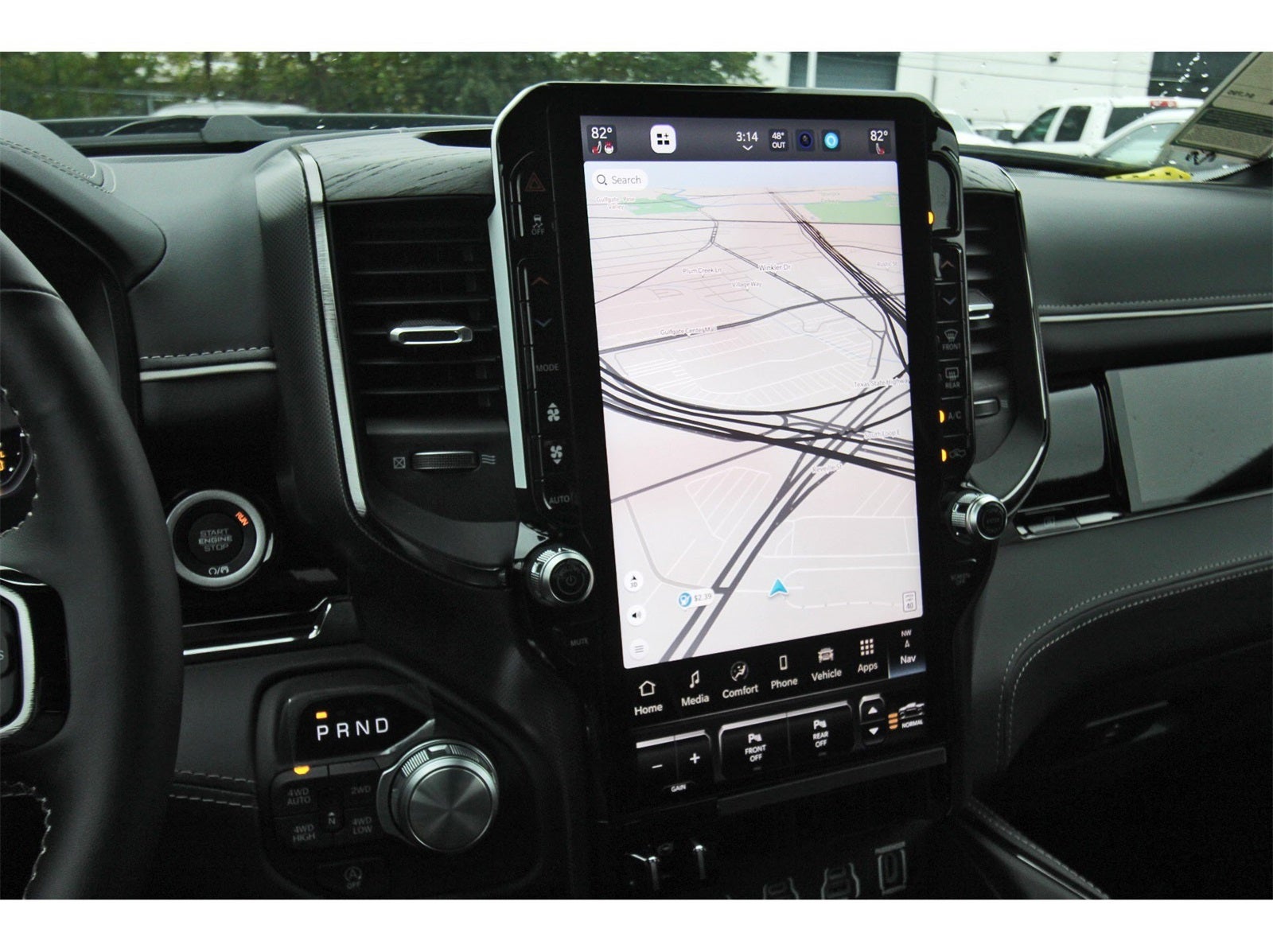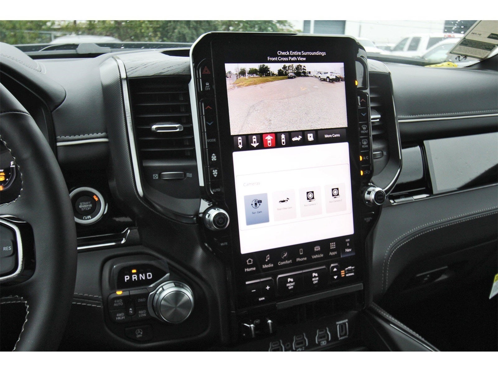 Limited Level An Equipment Group (12-Way/1-Way Trailer Connector, 14.4 Touchscreen Display, 240 Amp Alternator, 4G LTE Wi-Fi Hot Spot, Apple CarPlay, Connected Travel and Traffic Services, Connectivity - US/Canada, Disassociated Touchscreen Display, Drowsy Driver Detection, Evasive Steer Assist, Exterior 115V AC Outlet, Global Telematics Box Module, Google Android Auto, GPS Antenna Input, GPS Navigation, Hands-Free Active Driving Assist System, HD Radio, Heads-Up Display, Integrated Center Stack Radio, Integrated Voice Command with Bluetooth®, Intersection Collision Assist System, LED CHMSL Lamp, Radio: Uconnect 5 Nav with 14.4 Display, RamBox Cargo Management System, SiriusXM Radio Service, SiriusXM with 360L, Smartphone as a Key Capable, Surround View Camera System, Traffic Sign Recognition, Tri-Fold Tonneau Cover, and USB Host Flip), Night Edition (Accent Color Door Handles, Accent Color Premium Power Mirrors, Accent Color Tailgate Handle, Auto Power-Folding Mirrors, Auto-Dimming Exterior Driver Mirror, Black Day Light Opening Moldings, Black Exterior Truck Badging, Black Grille Surround Texture 7 Black, Black Headlamp Bezels, Black Painted Exterior Mirrors Caps, Black Tail Lamp Bezels, Body Color Front Bumper, Body Color Rear Bumper with Step Pads, Convex Wide-Angle Exterior Mirror Insert, Dual Exhaust with Black Tips, Exterior Mirrors Courtesy Lamps, Exterior Mirrors with Heating Element, Exterior Mirrors with Memory, Exterior Mirrors with Supplemental Signals, Pirelli Brand Tires, RAM Grille Badge - Black, Sport Performance Hood, and Wheels: 22 x 9 Premium Black Aluminum), Quick Order Package 22M Limited, 19 Speakers, 3.92 Rear Axle Ratio, 4-Wheel Disc Brakes, ABS brakes, Active Noise Control System, Adjustable pedals, Air Conditioning, Alloy wheels, AM/FM radio, Apple CarPlay/Android Auto, Audio memory, Auto High-beam Headlights, Auto-dimming door mirrors, Auto-dimming Rear-View mirror, Auto-leveling suspension, Automatic temperature control, Bodyside moldings, Brake assist, Bumpers: chrome, Chrome Exterior Mirrors, Compass, Delay-off headlights, Dome Dual LED Reading Lamp, Driver door bin, Driver vanity mirror, Dual front impact airbags, Dual front side impact airbags, Dual-Pane Panoramic Sunroof, Electronic Stability Control, Exterior Parking Camera Rear, Front anti-roll bar, Front Bucket Seats, Front Center Armrest w/Storage, Front dual zone A/C, Front fog lights, Front License Plate Bracket, Front reading lights, Front wheel independent suspension, Fully automatic headlights, Garage door transmitter, Genuine wood console insert, Genuine wood dashboard insert, Genuine wood door panel insert, Heated door mirrors, Heated front seats, Heated rear seats, Heated steering wheel, Illuminated entry, Leather steering wheel, LED Dome/Reading Lamp, Low tire pressure warning, Memory seat, Multi-Function Tailgate, Navigation System, Occupant sensing airbag, Outside temperature display, Overhead airbag, Overhead console, Panic alarm, Passenger door bin, Passenger vanity mirror, Pedal memory, Power door mirrors, Power driver seat, Power passenger seat, Power steering, Power windows, Premium Quilted Leather Bucket Seats, Radio data system, Radio: Uconnect 5 Navigation with 12.0 Display, Rain sensing wipers, RAM's Head Badge, Rear anti-roll bar, Rear reading lights, Rear seat center armrest, Rear step bumper, Rear window defroster, Remote keyless entry, Remote Tailgate Release, Security system, Speed control, Split folding rear seat, Steering wheel mounted audio controls, Tachometer, Telescoping steering wheel, Tilt steering wheel, Traction control, Trailer Brake Control, Trip computer, Turn signal indicator mirrors, Variably intermittent wipers, Ventilated front seats, Ventilated rear seats, Voltmeter, and Wheels: 20 x 9 Premium Paint/Polished.