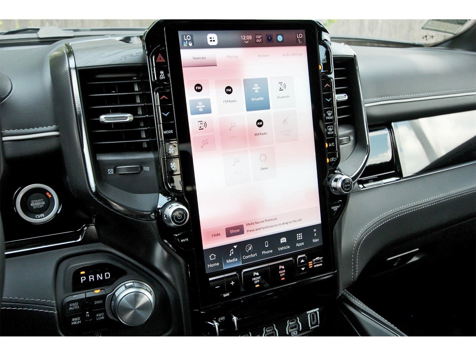 Limited Level An Equipment Group (12-Way/1-Way Trailer Connector, 14.4 Touchscreen Display, 240 Amp Alternator, 4G LTE Wi-Fi Hot Spot, Apple CarPlay, Connected Travel and Traffic Services, Connectivity - US/Canada, Disassociated Touchscreen Display, Drowsy Driver Detection, Evasive Steer Assist, Exterior 115V AC Outlet, Global Telematics Box Module, Google Android Auto, GPS Antenna Input, GPS Navigation, Hands-Free Active Driving Assist System, HD Radio, Heads-Up Display, Integrated Center Stack Radio, Integrated Voice Command with Bluetooth®, Intersection Collision Assist System, LED CHMSL Lamp, Radio: Uconnect 5 Nav with 14.4 Display, RamBox Cargo Management System, SiriusXM Radio Service, SiriusXM with 360L, Smartphone as a Key Capable, Surround View Camera System, Traffic Sign Recognition, Tri-Fold Tonneau Cover, and USB Host Flip), Night Edition (Accent Color Door Handles, Accent Color Premium Power Mirrors, Accent Color Tailgate Handle, Auto Power-Folding Mirrors, Auto-Dimming Exterior Driver Mirror, Black Day Light Opening Moldings, Black Exterior Truck Badging, Black Grille Surround Texture 7 Black, Black Headlamp Bezels, Black Painted Exterior Mirrors Caps, Black Tail Lamp Bezels, Body Color Front Bumper, Body Color Rear Bumper with Step Pads, Convex Wide-Angle Exterior Mirror Insert, Dual Exhaust with Black Tips, Exterior Mirrors Courtesy Lamps, Exterior Mirrors with Heating Element, Exterior Mirrors with Memory, Exterior Mirrors with Supplemental Signals, Pirelli Brand Tires, RAM Grille Badge - Black, Sport Performance Hood, and Wheels: 22 x 9 Premium Black Aluminum), Quick Order Package 22M Limited, 19 Speakers, 3.92 Rear Axle Ratio, 4-Wheel Disc Brakes, ABS brakes, Active Noise Control System, Adjustable pedals, Air Conditioning, Alloy wheels, AM/FM radio, Apple CarPlay/Android Auto, Audio memory, Auto High-beam Headlights, Auto-dimming door mirrors, Auto-dimming Rear-View mirror, Auto-leveling suspension, Automatic temperature control, Bodyside moldings, Brake assist, Bumpers: chrome, Chrome Exterior Mirrors, Compass, Delay-off headlights, Dome Dual LED Reading Lamp, Driver door bin, Driver vanity mirror, Dual front impact airbags, Dual front side impact airbags, Dual-Pane Panoramic Sunroof, Electronic Stability Control, Exterior Parking Camera Rear, Front anti-roll bar, Front Bucket Seats, Front Center Armrest w/Storage, Front dual zone A/C, Front fog lights, Front License Plate Bracket, Front reading lights, Front wheel independent suspension, Fully automatic headlights, Garage door transmitter, Genuine wood console insert, Genuine wood dashboard insert, Genuine wood door panel insert, Heated door mirrors, Heated front seats, Heated rear seats, Heated steering wheel, Illuminated entry, Leather steering wheel, LED Dome/Reading Lamp, Low tire pressure warning, Memory seat, Multi-Function Tailgate, Navigation System, Occupant sensing airbag, Outside temperature display, Overhead airbag, Overhead console, Panic alarm, Passenger door bin, Passenger vanity mirror, Pedal memory, Power door mirrors, Power driver seat, Power passenger seat, Power steering, Power windows, Premium Quilted Leather Bucket Seats, Radio data system, Radio: Uconnect 5 Navigation with 12.0 Display, Rain sensing wipers, RAM's Head Badge, Rear anti-roll bar, Rear reading lights, Rear seat center armrest, Rear step bumper, Rear window defroster, Remote keyless entry, Remote Tailgate Release, Security system, Speed control, Split folding rear seat, Steering wheel mounted audio controls, Tachometer, Telescoping steering wheel, Tilt steering wheel, Traction control, Trailer Brake Control, Trip computer, Turn signal indicator mirrors, Variably intermittent wipers, Ventilated front seats, Ventilated rear seats, Voltmeter, and Wheels: 20 x 9 Premium Paint/Polished.