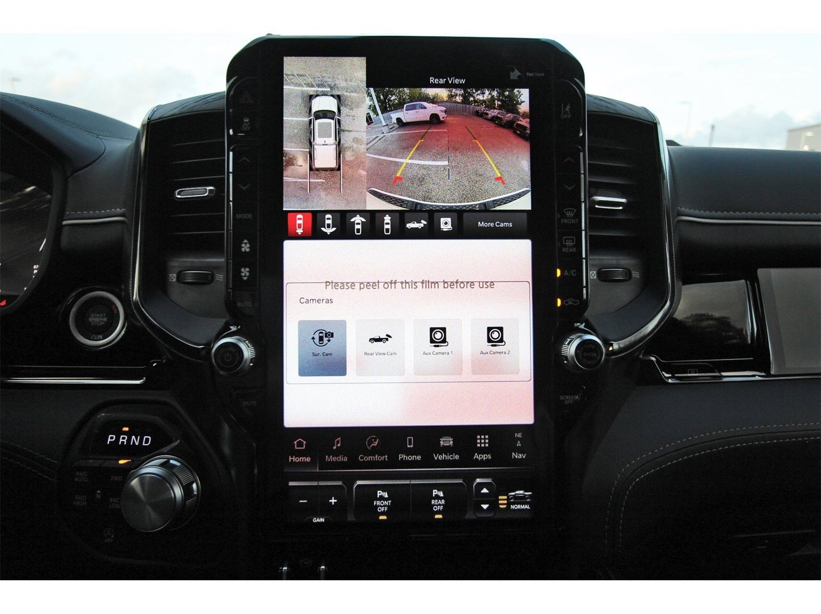 Bed Utility Group (Exterior 115V AC Outlet and MOPAR 4 Adjustable Cargo Tie-Down Hooks), Limited Level An Equipment Group (12-Way/1-Way Trailer Connector, 14.4 Touchscreen Display, 240 Amp Alternator, 4G LTE Wi-Fi Hot Spot, Apple CarPlay, Connected Travel and Traffic Services, Connectivity - US/Canada, Disassociated Touchscreen Display, Drowsy Driver Detection, Evasive Steer Assist, Global Telematics Box Module, Google Android Auto, GPS Antenna Input, GPS Navigation, Hands-Free Active Driving Assist System, HD Radio, Heads-Up Display, Integrated Center Stack Radio, Integrated Voice Command with Bluetooth®, Intersection Collision Assist System, LED CHMSL Lamp, Radio: Uconnect 5 Nav with 14.4 Display, RamBox Cargo Management System, SiriusXM Radio Service, SiriusXM with 360L, Smartphone as a Key Capable, Surround View Camera System, Traffic Sign Recognition, Tri-Fold Tonneau Cover, and USB Host Flip), Night Edition (Accent Color Door Handles, Accent Color Premium Power Mirrors, Accent Color Tailgate Handle, Auto Power-Folding Mirrors, Auto-Dimming Exterior Driver Mirror, Black Day Light Opening Moldings, Black Exterior Truck Badging, Black Grille Surround Texture 7 Black, Black Headlamp Bezels, Black Painted Exterior Mirrors Caps, Black Tail Lamp Bezels, Body Color Front Bumper, Body Color Rear Bumper with Step Pads, Convex Wide-Angle Exterior Mirror Insert, Dual Exhaust with Black Tips, Exterior Mirrors Courtesy Lamps, Exterior Mirrors with Heating Element, Exterior Mirrors with Memory, Exterior Mirrors with Supplemental Signals, Pirelli Brand Tires, RAM Grille Badge - Black, Sport Performance Hood, and Wheels: 22 x 9 Premium Black Aluminum), Quick Order Package 22M Limited, 19 Speakers, 3.92 Rear Axle Ratio, 4-Wheel Disc Brakes, ABS brakes, Active Noise Control System, Adjustable pedals, Air Conditioning, Alloy wheels, AM/FM radio, Apple CarPlay/Android Auto, Audio memory, Auto High-beam Headlights, Auto-dimming door mirrors, Auto-dimming Rear-View mirror, Auto-leveling suspension, Automatic temperature control, Bodyside moldings, Brake assist, Bumpers: chrome, Chrome Exterior Mirrors, Compass, Delay-off headlights, Dome Dual LED Reading Lamp, Driver door bin, Driver vanity mirror, Dual front impact airbags, Dual front side impact airbags, Dual-Pane Panoramic Sunroof, Electronic Stability Control, Exterior Parking Camera Rear, Front anti-roll bar, Front Bucket Seats, Front Center Armrest w/Storage, Front dual zone A/C, Front fog lights, Front License Plate Bracket, Front reading lights, Front wheel independent suspension, Fully automatic headlights, Garage door transmitter, Genuine wood console insert, Genuine wood dashboard insert, Genuine wood door panel insert, Heated door mirrors, Heated front seats, Heated rear seats, Heated steering wheel, Illuminated entry, Leather steering wheel, LED Dome/Reading Lamp, Low tire pressure warning, Memory seat, Multi-Function Tailgate, Navigation System, Occupant sensing airbag, Outside temperature display, Overhead airbag, Overhead console, Panic alarm, Passenger door bin, Passenger vanity mirror, Pedal memory, Power door mirrors, Power driver seat, Power passenger seat, Power steering, Power windows, Premium Quilted Leather Bucket Seats, Radio data system, Radio: Uconnect 5 Navigation with 12.0 Display, Rain sensing wipers, RAM's Head Badge, Rear anti-roll bar, Rear reading lights, Rear seat center armrest, Rear step bumper, Rear window defroster, Remote keyless entry, Remote Tailgate Release, Security system, Speed control, Split folding rear seat, Steering wheel mounted audio controls, Tachometer, Telescoping steering wheel, Tilt steering wheel, Traction control, Trailer Brake Control, Trip computer, Turn signal indicator mirrors, Variably intermittent wipers, Ventilated front seats, Ventilated rear seats, Voltmeter, and Wheels: 20 x 9 Premium Paint/Polished.