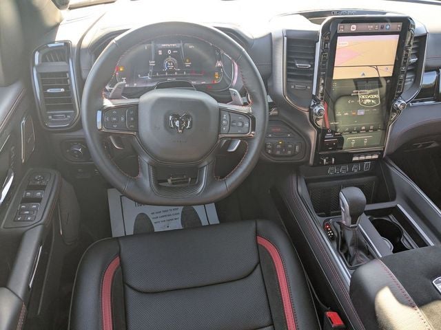 Check out all these great options Quick Order Package 22Y RHO, RHO Level 1 Equipment Group (12-Way/1-Way Trailer Connector, 14.4 Touchscreen Display, 240 Amp Alternator, 4G LTE Wi-Fi Hot Spot, Connected Travel and Traffic Services, Connectivity - US/Canada, Disassociated Touchscreen Display, Driver Power Seat Back Massage, Driver Seat Memory, Driver/Passenger Wrapped Assist Handles, Drowsy Driver Detection, Dual Wireless Charging Pad, Evasive Steer Assist, Exterior Mirrors with Memory, Front Passenger Interactive Display, Front Passenger Power Seat Back Massage, Full Length Premium Upgraded Floor Console, GPS Navigation, Hands-Free Active Driving Assist System, Harman/Kardon 19 Speaker Premium Sound, HD Radio, Heads-Up Display, Heated Second Row Seats, Integrated Center Stack Radio, Integrated Voice Command with Bluetooth®, Intersection Collision Assist System, Leather/Carbon Flat-Bottom Steering Wheel, LED CHMSL Lamp, Luxury Front Door Trim Panel, Power Adjustable Pedals with Memory, Power Tailgate, Premium Wrapped Instrument Panel Bezel, Radio: Uconnect 5 Nav with 14.4 Display, Radio/Driver Seat/Mirrors/Pedals Memory, Rain Sensitive Windshield Wipers, Real Carbon Fiber Interior Accents, Rear 60/40 Folding Split Recline Seat, SiriusXM Radio Service, Smartphone as a Key Capable, Surround View Camera System, Traffic Sign Recognition, USB Host Flip, Ventilated Front Seats, and Ventilated Rear Seats), 10 Speakers, 3.92 Rear Axle Ratio, 4-Wheel Disc Brakes, ABS brakes, Adaptive suspension, Adjustable pedals, Air Conditioning, Alloy wheels, AM/FM radio, Apple CarPlay/Android Auto, Auto High-beam Headlights, Auto Power-Folding Mirrors, Auto-dimming door mirrors, Auto-Dimming Exterior Driver Mirror, Auto-dimming Rear-View mirror, Automatic temperature control, Brake assist, Compass, Delay-off headlights, Dome Dual LED Reading Lamp, Driver door bin, Driver vanity mirror, Dual front impact airbags, Dual front side impact airbags, Dual-Pane Panoramic Sunroof, Electronic Stability Control, Exterior Mirrors Courtesy Lamps, Exterior Mirrors with Heating Element, Exterior Mirrors with Supplemental Signals, Exterior Parking Camera Rear, Flareside Box, Front anti-roll bar, Front Bucket Seats, Front Center Armrest w/Storage, Front dual zone A/C, Front fog lights, Front License Plate Bracket, Front reading lights, Front wheel independent suspension, Fully automatic headlights, Garage door transmitter, Heated door mirrors, Heated front seats, Heated steering wheel, Illuminated entry, Leather Shift Knob, Leather steering wheel, Leather Trimmed Bucket Seats, Low tire pressure warning, MOPAR RHO Exterior Graphics, MOPAR RHO Hood Graphics, MOPAR Rock Rails, Navigation System, Occupant sensing airbag, Outside temperature display, Overhead airbag, Overhead console, Panic alarm, Passenger door bin, Passenger vanity mirror, Power door mirrors, Power driver seat, Power passenger seat, Power steering, Power windows, Radio data system, Radio: Uconnect 5 Navigation with 12.0 Display, Rear reading lights, Rear seat center armrest, Rear step bumper, Rear window defroster, Red Interior Accents, Remote keyless entry, Security system, Speed control, Split folding rear seat, Sport steering wheel, Steering wheel mounted audio controls, Tachometer, Telescoping steering wheel, Tilt steering wheel, Traction control, Trip computer, Turn signal indicator mirrors, Variably intermittent wipers, Voltmeter, Wheels: 18 x 9 Bead-Lock Aluminum, and Wheels: 18 x 9 Black Paint/Polish Aluminum.
