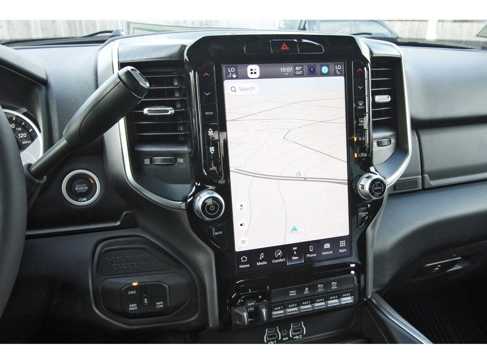 Big Horn Level 1 Plus Equipment Group (12 Touchscreen Display, 2 Way Rear Headrest Seat, 2nd Row in Floor Storage Bins, 4 Way Front Headrests, 40/20/40 Split Bench Seat, 4G LTE Wi-Fi Hot Spot, 9 Alpine Speakers with Subwoofer, Air Conditioning ATC with Dual Zone Control, Alexa Built-in, Anti-Spin Differential Rear Axle, Apple CarPlay, Auto Power-Folding Mirrors, Auto-Dimming Rear-View Mirror, Black Exterior Mirrors, Connected Travel and Traffic Services, Connectivity - US/Canada, Disassociated Touchscreen Display, Dual Glove Boxes, Emergency Vehicle Alert System (EVAS), Exterior Mirrors Courtesy Lamps, Exterior Mirrors with Heating Element, Exterior Mirrors with Supplemental Signals, Foam Bottle Insert (door Trim Panel), Folding Flat Load Floor Storage, Footwell Courtesy Lamp, For Details, Visit DriveUconnect.com, For More Info, Call 800-643-2112, Forward and Reverse Utility Lights, Front Armrest with Cupholders, Front Center Seat Cushion Storage, Front Seat Back Map Pockets, Global Telematics Box Module, Glove Box Lamp, Google Android Auto, GPS Antenna Input, GPS Navigation, HD Radio, Integrated Voice Command with Bluetooth®, LED Bed Lighting, Locking Lower Glove Box, Luxury Steering Wheel, Manual Adjust 4-Way Front Passenger Seat, Mirror Running Lights, MOPAR Deployable Bed Step, MOPAR Spray in Bedliner, Off-Road Info Pages, Power 2-Way Driver Lumbar Adjust, Power Adjust 8-Way Driver Seat, Power Adjust Mirrors, Power Heated Folding Telescopic Mirrors, Power Telescoping Mirrors, Power-Adjustable Convex Aux Mirrors, Premium Cloth 40/20/40 Bench Seat, Radio: Uconnect 5 Navigation with 12.0 Display, Rear 60/40 Folding Seat, Rear Dome with on/Off Switch Lamp, Remote Start System, Remote USB Port - Charge Only, Selectable Tire Fill Alert, SiriusXM Radio Service, SiriusXM with 360L, Steering Wheel Mounted Audio Controls, Storage Tray, and Trailer Tow Pages), Heated Seats and Wheel Group (Heated Front Seats and Heated Steering Wheel), Night Edition (Black Exterior Truck Badging, Black Interior Accents, Black Wheel Center Hub, Body Color Grille-Surround, Gloss Black Nostrils/Mic Black Grille, Painted Front Bumper, Painted Rear Bumper, and Wheels: 20 x 8.0 Black Painted Aluminum), Quick Order Package 2UY Lone Star (Lone Star Badge), 3.73 Axle Ratio, 4-Wheel Disc Brakes, 5th Wheel/Gooseneck Towing Prep Group, 6 Speakers, ABS brakes, Air Conditioning, Alloy wheels, AM/FM radio: SiriusXM, Apple CarPlay/Android Auto, Brake assist, Bumpers: chrome, Center Hub, Clearance Lamps, Cloth 40/20/40 Bench Seat, Compass, Dash Pass Thru Wire Circuits, Delay-off headlights, Driver door bin, Dual front impact airbags, Dual front side impact airbags, Electronic Stability Control, Front anti-roll bar, Front Center Armrest w/Storage, Front fog lights, Front License Plate Bracket, Front reading lights, Fully automatic headlights, Heated door mirrors, Illuminated entry, Instrument Panel Mounted Auxiliary Switches, Low tire pressure warning, Manual Adjust 4-Way Driver Seat, MOPAR Front and Rear Rubber Floor Mats, Occupant sensing airbag, Outside temperature display, Overhead airbag, Overhead console, Panic alarm, ParkView Rear Back-Up Camera, Passenger door bin, Passenger vanity mirror, Power door mirrors, Power steering, Power windows, Radio data system, Radio: Uconnect 5 with 8.4 Display, Rear anti-roll bar, Rear Folding Seat, Rear seat center armrest, Rear step bumper, Rear window defroster, Remote keyless entry, Security system, Speed control, Tachometer, Tilt steering wheel, Traction control, Trip computer, Turn signal indicator mirrors, Variably intermittent wipers, Voltmeter, and Wheels: 18 x 8.0 Polished AluminuM.