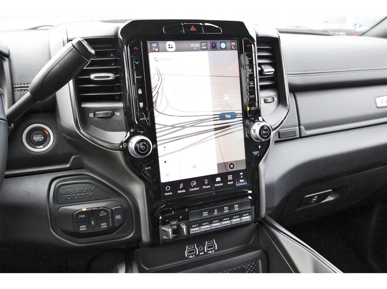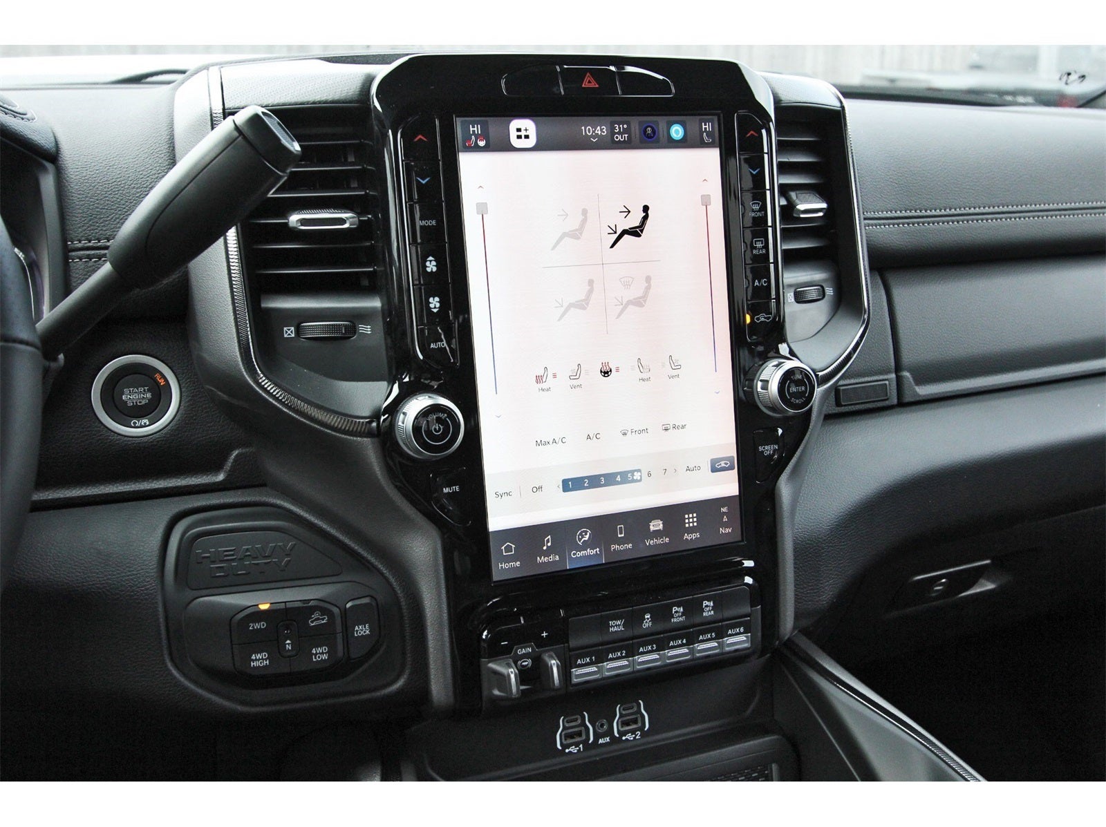 Quick Order Package 2UR Rebel, Rebel Level 1 Equipment Group (2 Way Rear Headrest Seat, 4 Way Front Headrests, 9 Alpine Speakers with Subwoofer, Auto Adjust in Reverse Exterior Mirrors, Auto Dim Exterior Mirror, Auto High Beam Headlamp Control, Auto Power-Folding Mirrors, Auto-Dimming Exterior Passenger Mirror, Black Exterior Mirrors, Body Color Door Handles, Exterior Mirrors Courtesy Lamps, Exterior Mirrors with Heating Element, Exterior Mirrors with Memory, Exterior Mirrors with Supplemental Signals, Folding Flat Load Floor Storage, Forward and Reverse Utility Lights, Front Door Locks 2-Door Passive Entry, Heated Front Seats, Heated Steering Wheel, High Back Seats, LED Dome Lamp with on/Off Switch, LED Interior Lighting, Mirror Running Lights, MOPAR Front and Rear Rubber Floor Mats, Overhead LED Lamps, Power 2-Way Driver Lumbar Adjust, Power Adjust 8-Way Driver Seat, Power Adjust Mirrors, Power Adjustable Pedals with Memory, Power Heated Fold Telescopic Mirrors with Memory, Power Telescoping Mirrors, Power-Adjustable Convex Aux Mirrors, Premium Overhead Console, Rain Sensitive Windshield Wipers, Rear 60/40 Folding Seat, Sport Performance Hood, Sun Visors with Illuminated Vanity Mirrors, and Universal Garage Door Opener), 3.73 Axle Ratio, 4-Wheel Disc Brakes, 4G LTE Wi-Fi Hot Spot, 5th Wheel/Gooseneck Towing Prep Group, 6 Speakers, ABS brakes, Adjustable pedals, Air Conditioning, Alexa Built-in, Alloy wheels, AM/FM radio: SiriusXM with 360L, Apple CarPlay, Apple CarPlay/Android Auto, Auto-dimming Rear-View mirror, Automatic temperature control, Black Wheel Center Hub, Block heater, Brake assist, Center Stop Lamp with Cargo View Camera, Cloth Heated Power Bench Seat, Compass, Connected Travel and Traffic Services, Connectivity - US/Canada, Dash Pass Thru Wire Circuits, Delay-off headlights, Disassociated Touchscreen Display, Driver door bin, Dual front impact airbags, Dual front side impact airbags, Electronic Stability Control, Emergency Vehicle Alert System (EVAS), For Details, Visit DriveUconnect.com, For More Info, Call 800-643-2112, Front anti-roll bar, Front Center Armrest w/Storage, Front dual zone A/C, Front fog lights, Front License Plate Bracket, Front reading lights, Fully automatic headlights, Global Telematics Box Module, Google Android Auto, GPS Antenna Input, GPS Navigation, HD Radio, Heated door mirrors, Heated front seats, Heated steering wheel, Illuminated entry, Instrument Panel Mounted Auxiliary Switches, Integrated Voice Command with Bluetooth®, Leather steering wheel, Low tire pressure warning, Navigation System, Occupant sensing airbag, Off-Road Info Pages, Outside temperature display, Overhead airbag, Overhead console, Panic alarm, ParkView Rear Back-Up Camera, Passenger door bin, Passenger vanity mirror, Power door mirrors, Power driver seat, Power steering, Power windows, Radio data system, Radio: Uconnect 5 Navigation with 12.0 Display, Rear anti-roll bar, Rear seat center armrest, Rear step bumper, Rear window defroster, Remote keyless entry, Security system, Selectable Tire Fill Alert, SiriusXM Radio Service, SiriusXM with 360L, Speed control, Split folding rear seat, Steering wheel mounted audio controls, Tachometer, Tilt steering wheel, Traction control, Trailer Tow Pages, Trip computer, Turn signal indicator mirrors, Variably intermittent wipers, Vendor Painted Cargo Box, Vendor Painted Cargo Box Tracking, Ventilated front seats, Voltmeter, and Wheels: 20 x 8.0 Black Diamond Cut AluminuM.