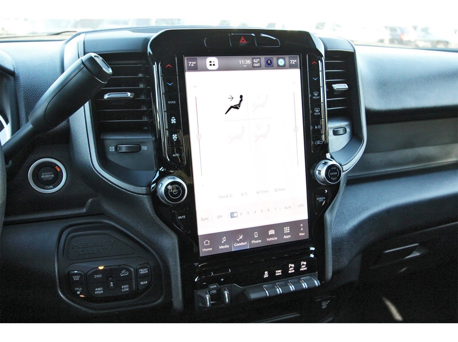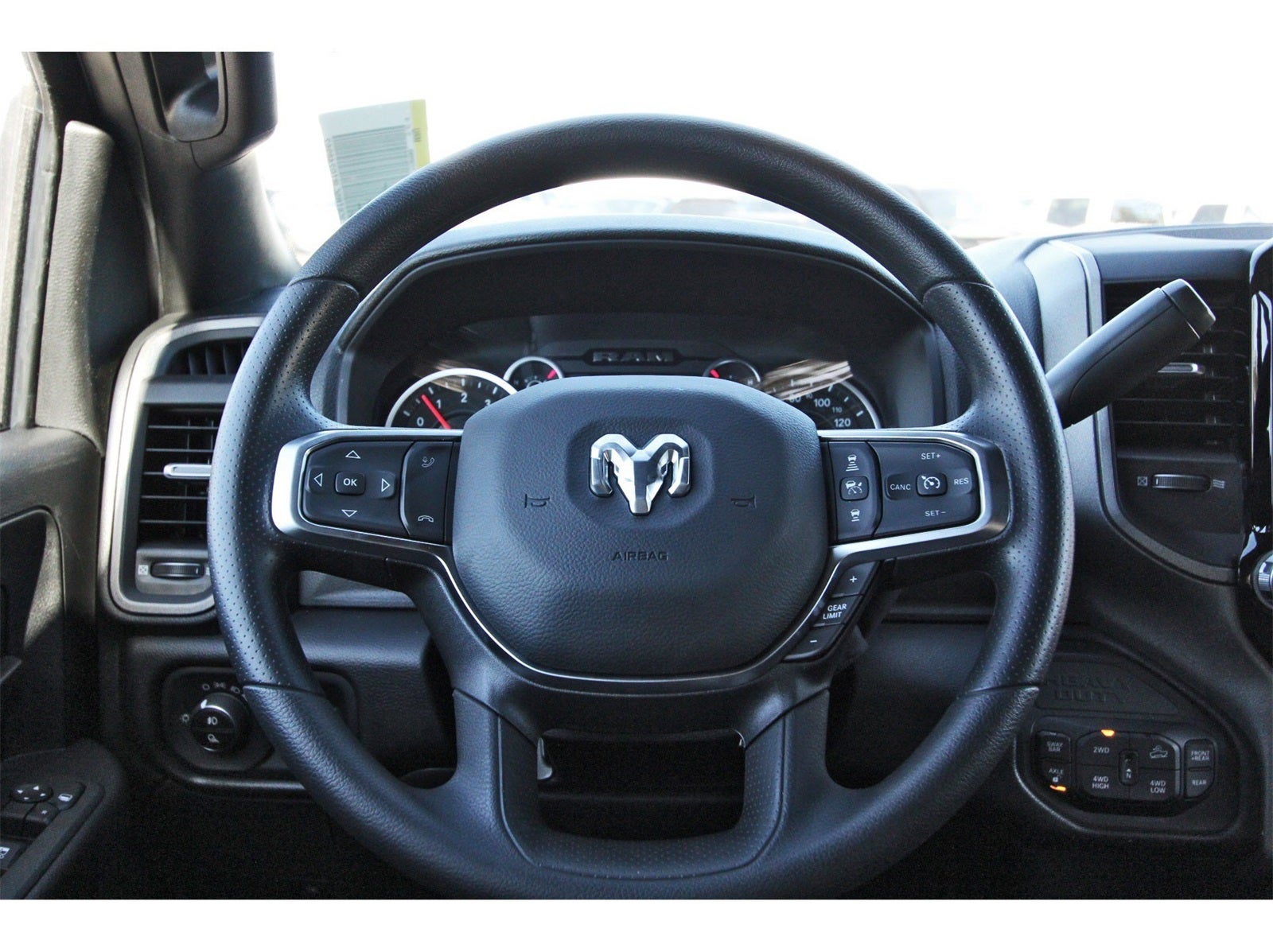 Power Wagon Package (Base Engine Controller, Black Wheel Center Hub, Black Wheel Flares, Front Disconnecting Stabilizer Bar, Front Electric Winch, Front Performance Tuned Shock Absorbers, Fuel Tank Skid Plate Shield, Hill Assist, ParkSense Front/Rear Park Assist System, Powder Coated Front Bumper, Powder Coated Rear Bumper, Raised Ride Height, RAM Articulink Suspension, Rear Performance Tuned Shock Absorbers, Rear Wheelhouse Liners, Tru-Lok Front and Rear Axles, and Wheels: 17 x 8.0 Black Painted Aluminum), Quick Order Package 2UA Tradesman, Tradesman Level 1 Equipment Group (115-Volt Auxiliary Front Power Outlet, 12 Touchscreen Display, 400W Inverter, 4G LTE Wi-Fi Hot Spot, Air Conditioning ATC with Dual Zone Control, Alexa Built-in, Apple CarPlay, Auto-Dimming Rear-View Mirror, Connected Travel and Traffic Services, Connectivity - US/Canada, Disassociated Touchscreen Display, Emergency Vehicle Alert System (EVAS), Exterior 115V AC Outlet, For Details, Visit DriveUconnect.com, For More Info, Call 800-643-2112, Global Telematics Box Module, Google Android Auto, GPS Antenna Input, GPS Navigation, HD Radio, Integrated Voice Command with Bluetooth®, Off-Road Info Pages, Radio: Uconnect 5 Navigation with 12.0 Display, Rear Power Sliding Window, Selectable Tire Fill Alert, SiriusXM Radio Service, SiriusXM with 360L, Tinted Acoustic Windshield Glass, and Trailer Tow Pages), 2 Way Rear Headrest Seat, 4 Way Front Headrests, 4-Wheel Disc Brakes, 40/20/40 Split Bench Seat, 6 Speakers, ABS brakes, Air Conditioning, AM/FM radio: SiriusXM, Apple CarPlay/Android Auto, Black Exterior Mirrors, Brake assist, Clearance Lamps, Compass, Delay-off headlights, Driver door bin, Dual front impact airbags, Dual front side impact airbags, Electronic Stability Control, Front anti-roll bar, Front Armrest with Cupholders, Front Center Armrest w/Storage, Front fog lights, Front License Plate Bracket, Front reading lights, Fully automatic headlights, Illuminated entry, Low tire pressure warning, Manual Adjust 4-Way Driver Seat, Manual Adjust 4-Way Front Passenger Seat, Manual Folding Exterior Mirrors, Manual Telescoping Mirrors, Mopar Black Tubular Side Steps, Occupant sensing airbag, Outside temperature display, Overhead airbag, Overhead console, Panic alarm, ParkView Rear Back-Up Camera, Passenger door bin, Passenger vanity mirror, Power steering, Power windows, Radio data system, Radio: Uconnect 5 with 8.4 Display, Rear anti-roll bar, Rear Folding Seat, Rear step bumper, Rear window defroster, Remote keyless entry, Remote USB Port - Charge Only, Speed control, Storage Tray, Tachometer, Tilt steering wheel, Traction control, Variably intermittent wipers, Voltmeter, and Wheels: 17 x 7.5 Black Steel StyleD.
