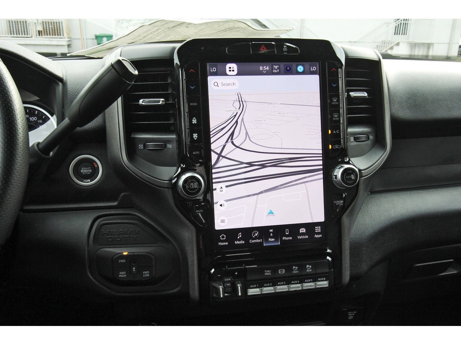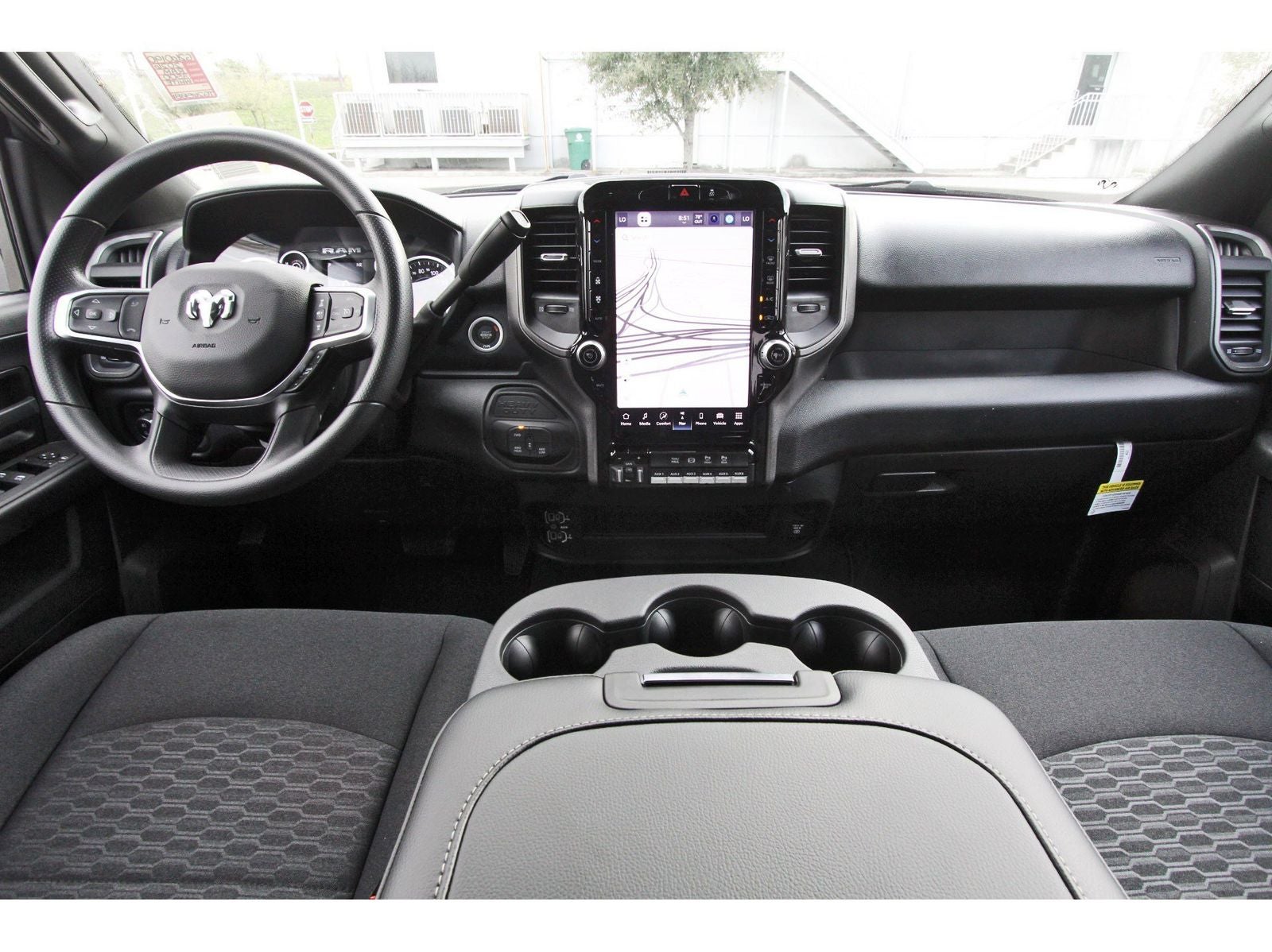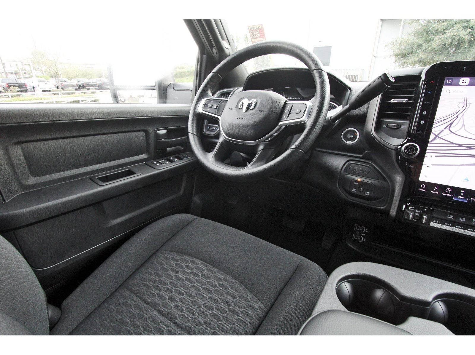 Quick Order Package 24A Tradesman, Tow-Mode Digital Rear View Mirror Package (Digital Rearview Mirror and Tow-Mode Camera (Wired)), Tradesman Level 2 Equipment Group (115-Volt Auxiliary Front Power Outlet, 12 Touchscreen Display, 2 Way Rear Headrest Seat, 4 Way Front Headrests, 40/20/40 Split Bench Seat, 400W Inverter, 4G LTE Wi-Fi Hot Spot, Air Conditioning ATC with Dual Zone Control, Alexa Built-in, Apple CarPlay, Auto-Dimming Rear-View Mirror, Black Exterior Mirrors, Bright Front Bumper, Bright Rear Bumper, Carpet Floor Covering, Center Hub, Chrome Grille Surround, Cloth 40/20/40 Bench Seat, Connected Travel and Traffic Services, Connectivity - US/Canada, Convenience Group, Disassociated Touchscreen Display, Emergency Vehicle Alert System (EVAS), Exterior 115V AC Outlet, Exterior Mirrors Courtesy Lamps, Exterior Mirrors with Heating Element, Exterior Mirrors with Supplemental Signals, For Details Visit DriveUconnect.com, For More Info, Call 800-643-2112, Front and Rear Floor Mats, Front Armrest with Cupholders, Global Telematics Box Module, Google Android Auto, GPS Antenna Input, GPS Navigation, HD Radio, Integrated Voice Command with Bluetooth®, Manual Adjust 4-Way Driver Seat, Manual Adjust 4-Way Front Passenger Seat, Manual Folding Exterior Mirrors, Manual Telescoping Mirrors, Matte Black Mesh with Chrome Grille, Mirror Running Lights, Mopar Black Tubular Side Steps, Off-Road Information Pages, Power Adjust Mirrors, Power Heat Fold Telescopic Mirrors, Power-Adjustable Convex Aux Mirrors, Radio: Uconnect 5 Navigation with 12.0 Display, Rear Folding Seat, Rear Power Sliding Window, Remote USB Port - Charge Only, Selectable Tire Fill Alert, SiriusXM Radio Service, SiriusXM with 360L, Storage Tray, Tinted Acoustic Windshield Glass, and Trailer Tow Pages), 4-Wheel Disc Brakes, 50 Gallon Fuel Tank, 5th Wheel/Gooseneck Towing Prep Group, 6 Speakers, 6000# Front Axle with Hub Extension, ABS brakes, Air Conditioning, AM/FM radio: SiriusXM, Apple CarPlay/Android Auto, Black Wheel Center Hub, Box and Rear Fender Clearance Lamps, Brake assist, Clearance Lamps, Compass, Dash Pass Thru Wire Circuits, Delay-off headlights, Driver door bin, Dual front impact airbags, Dual front side impact airbags, Dual Rear Wheels, Electronic Stability Control, Front anti-roll bar, Front Center Armrest w/Storage, Front fog lights, Front License Plate Bracket, Front reading lights, Fully automatic headlights, Illuminated entry, Instrument Panel Mounted Auxiliary Switches, Low tire pressure warning, Nexen Brand Tires, Occupant sensing airbag, Outside temperature display, Overhead airbag, Overhead console, Panic alarm, ParkView Rear Back-Up Camera, Passenger door bin, Passenger vanity mirror, Power steering, Power windows, Radio data system, Radio: Uconnect 5 with 8.4 Display, Rear step bumper, Rear Wheelhouse Liners, Rear window defroster, Remote keyless entry, Speed control, Tachometer, Tilt steering wheel, Traction control, Variably intermittent wipers, Voltmeter, Wheels: 17 x 6.0 Polished Aluminum, and Wheels: 18 x 8.0 Black Painted SteeL.