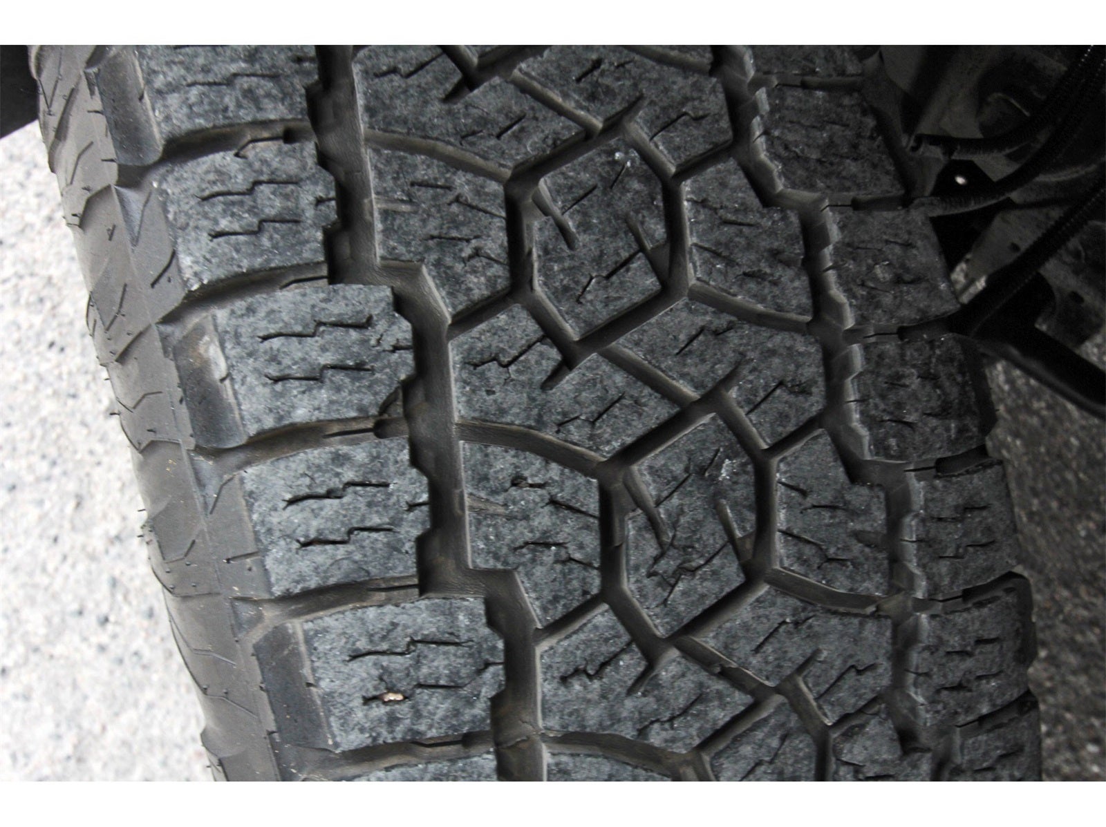 - Tires, LT275/65R18C blackwall Goodyear Wrangler DuraTrac MT